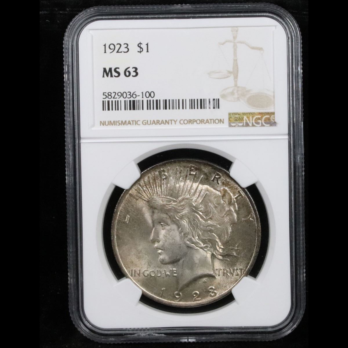 NGC 1923-p Peace Dollar $1 Graded ms63 By NGC.