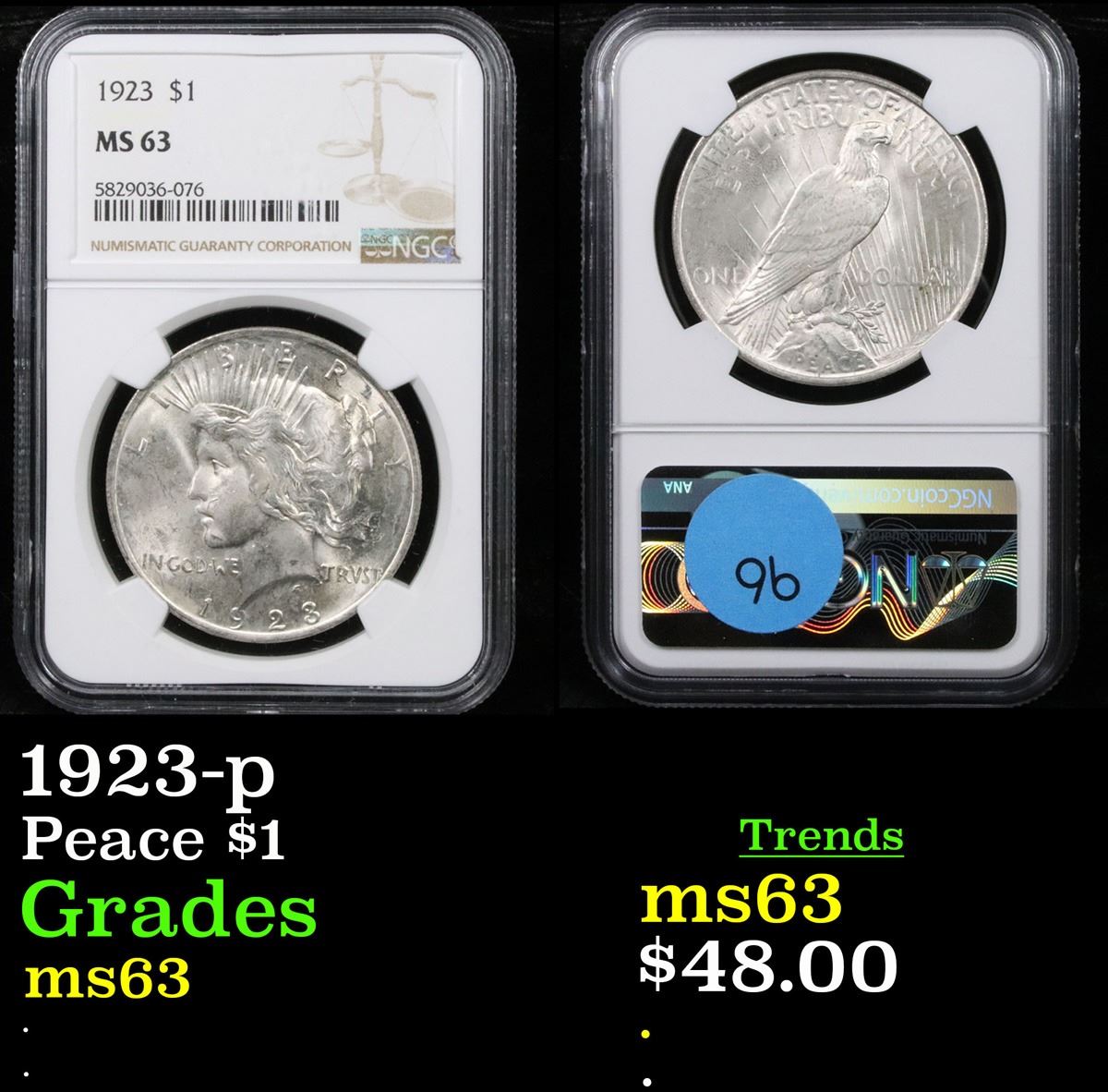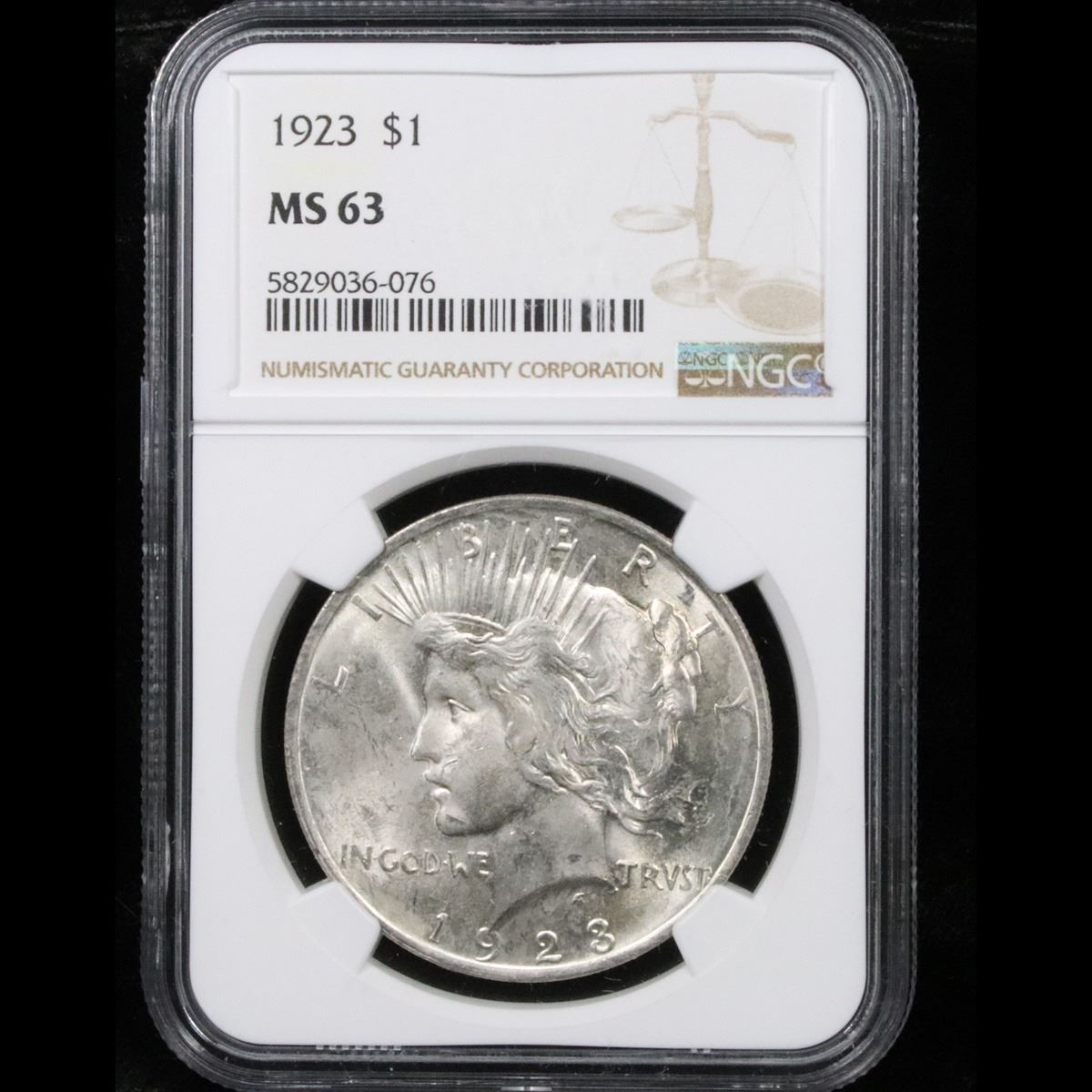 NGC 1923-p Peace Dollar $1 Graded ms63 By NGC.