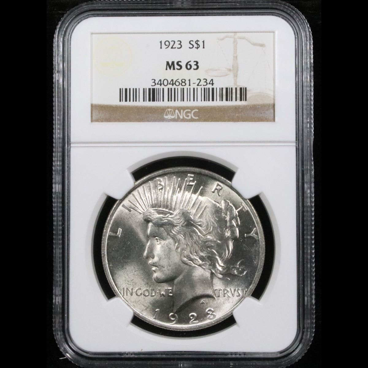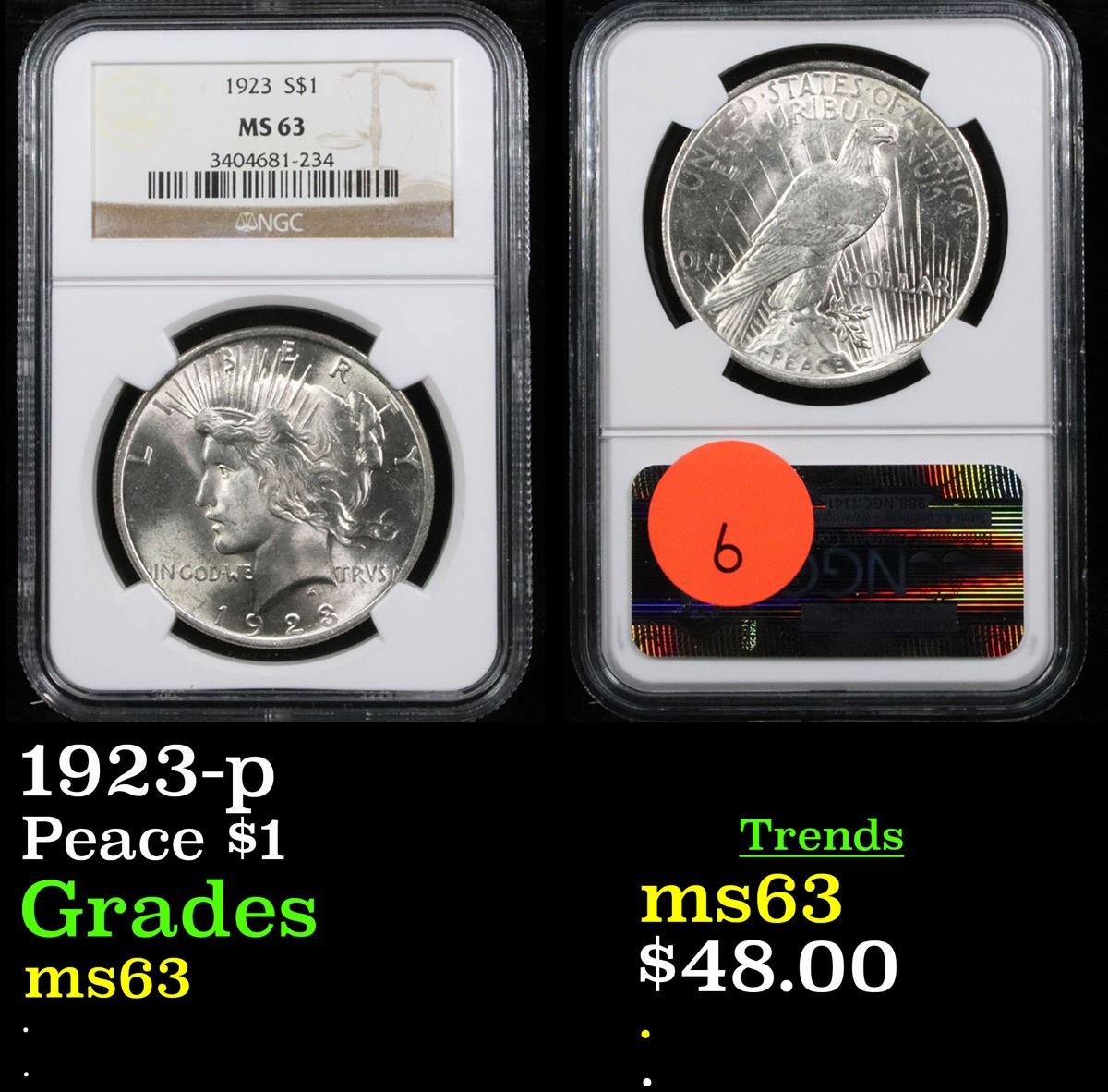 NGC 1923-p Peace Dollar $1 Graded ms63 By NGC.