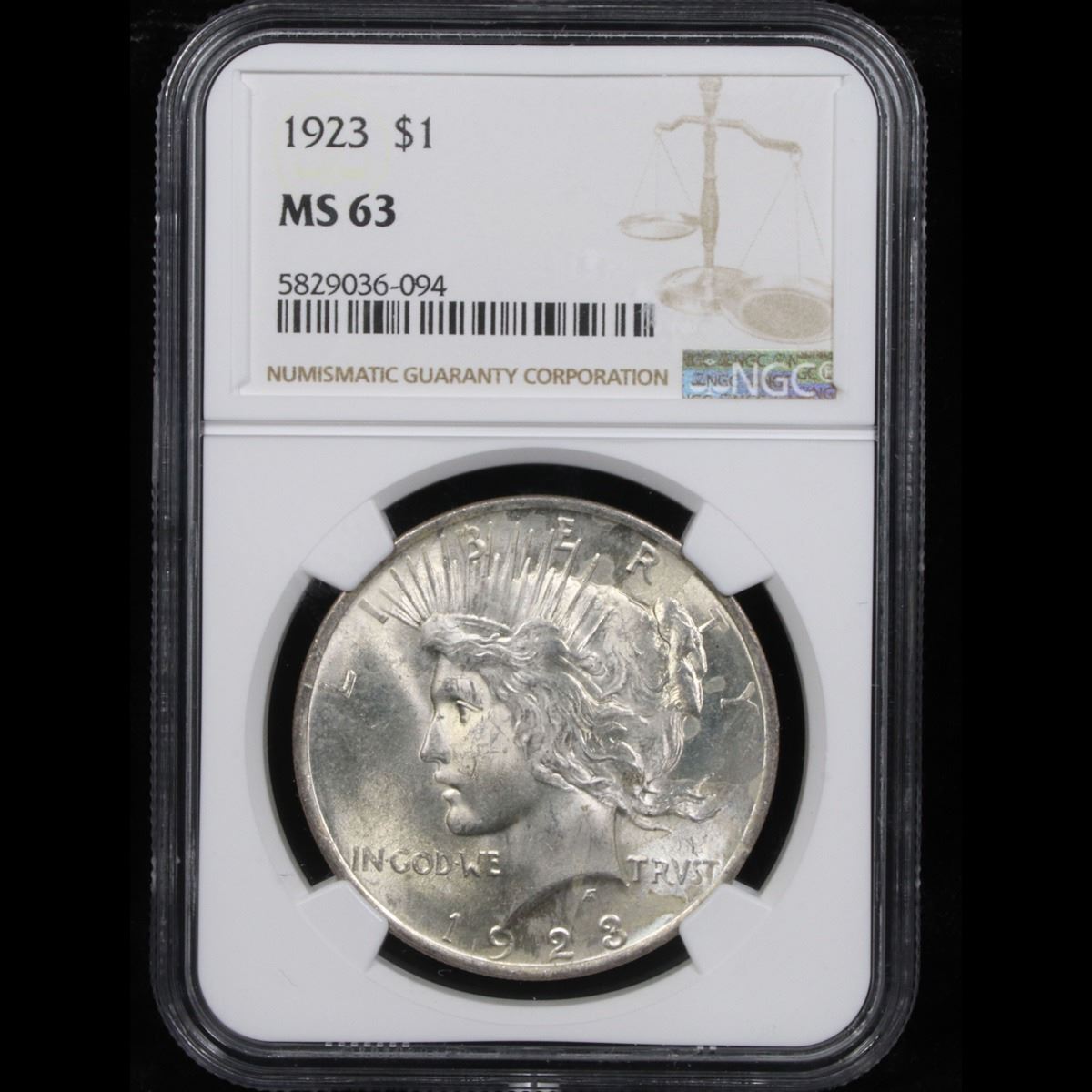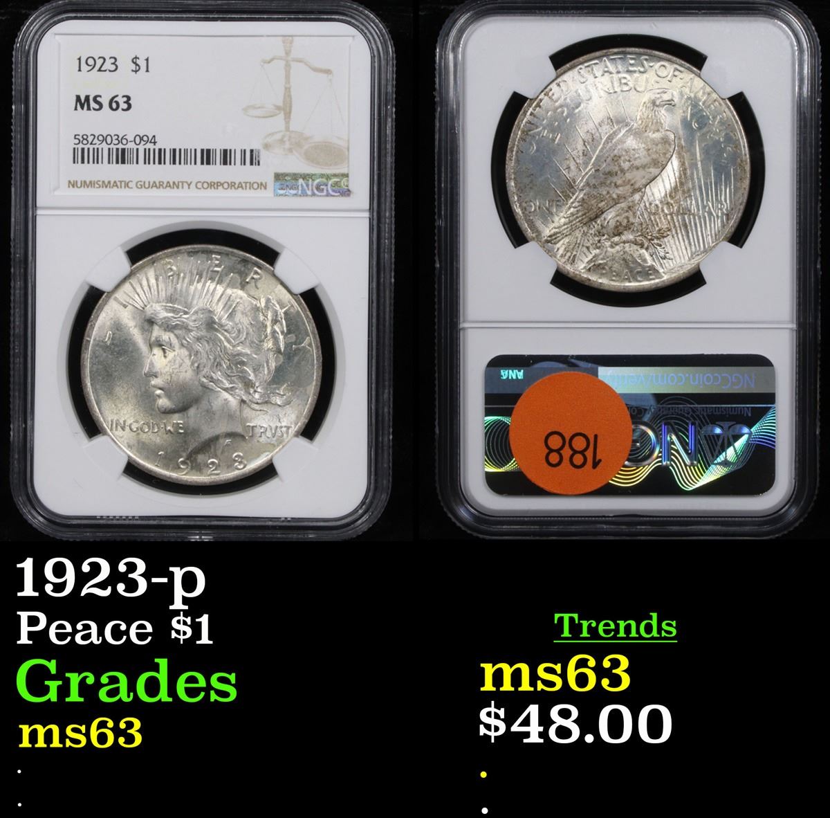NGC 1923-p Peace Dollar $1 Graded ms63 By NGC.