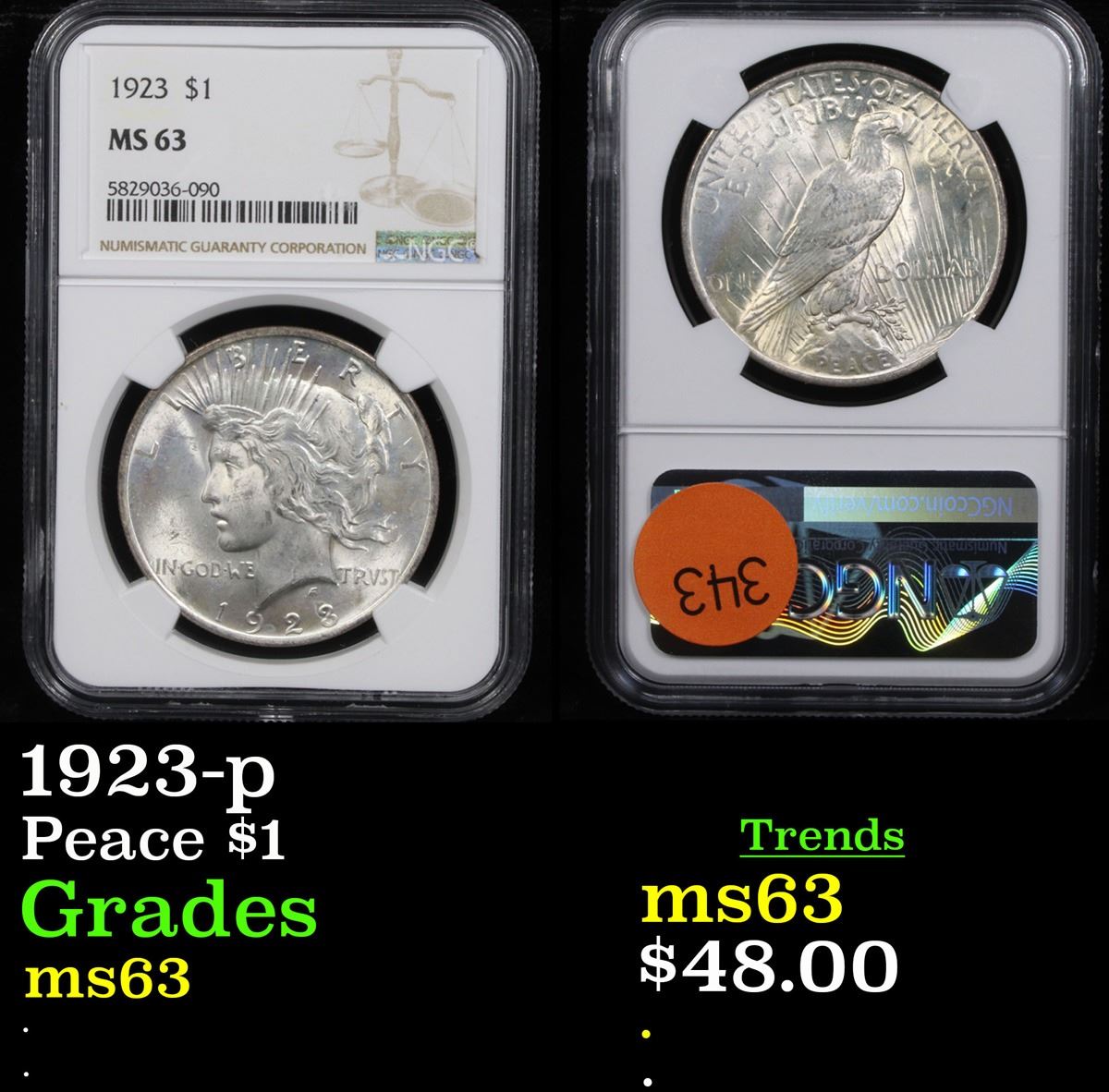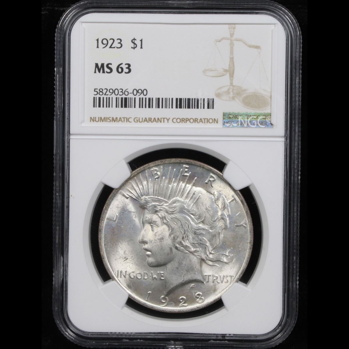 NGC 1923-p Peace Dollar $1 Graded ms63 By NGC.