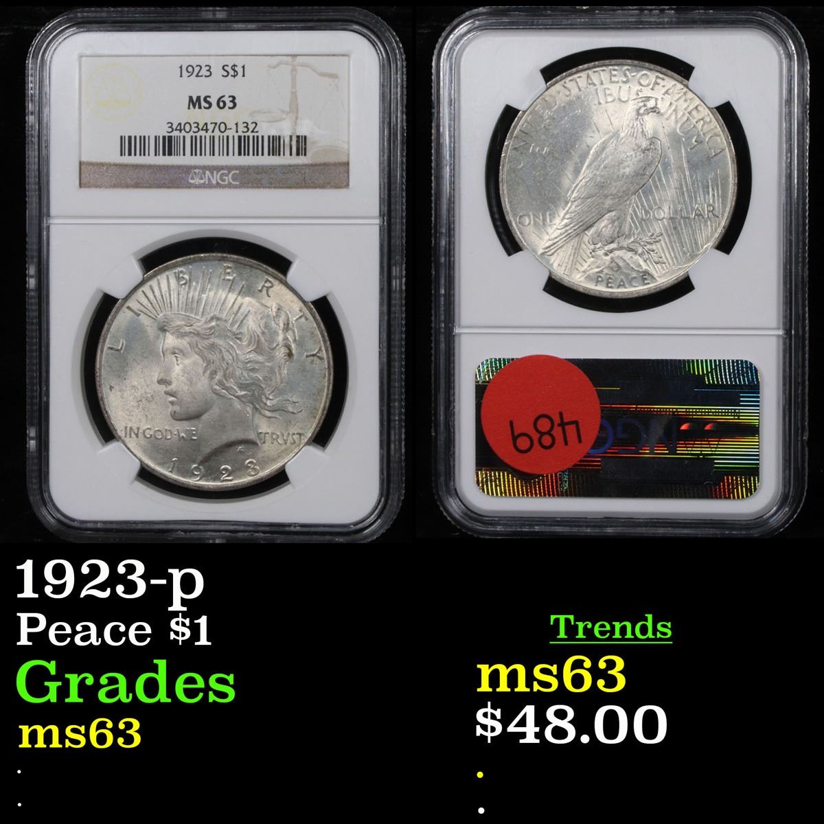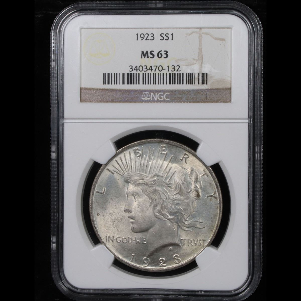 NGC 1923-p Peace Dollar $1 Graded ms63 By NGC.