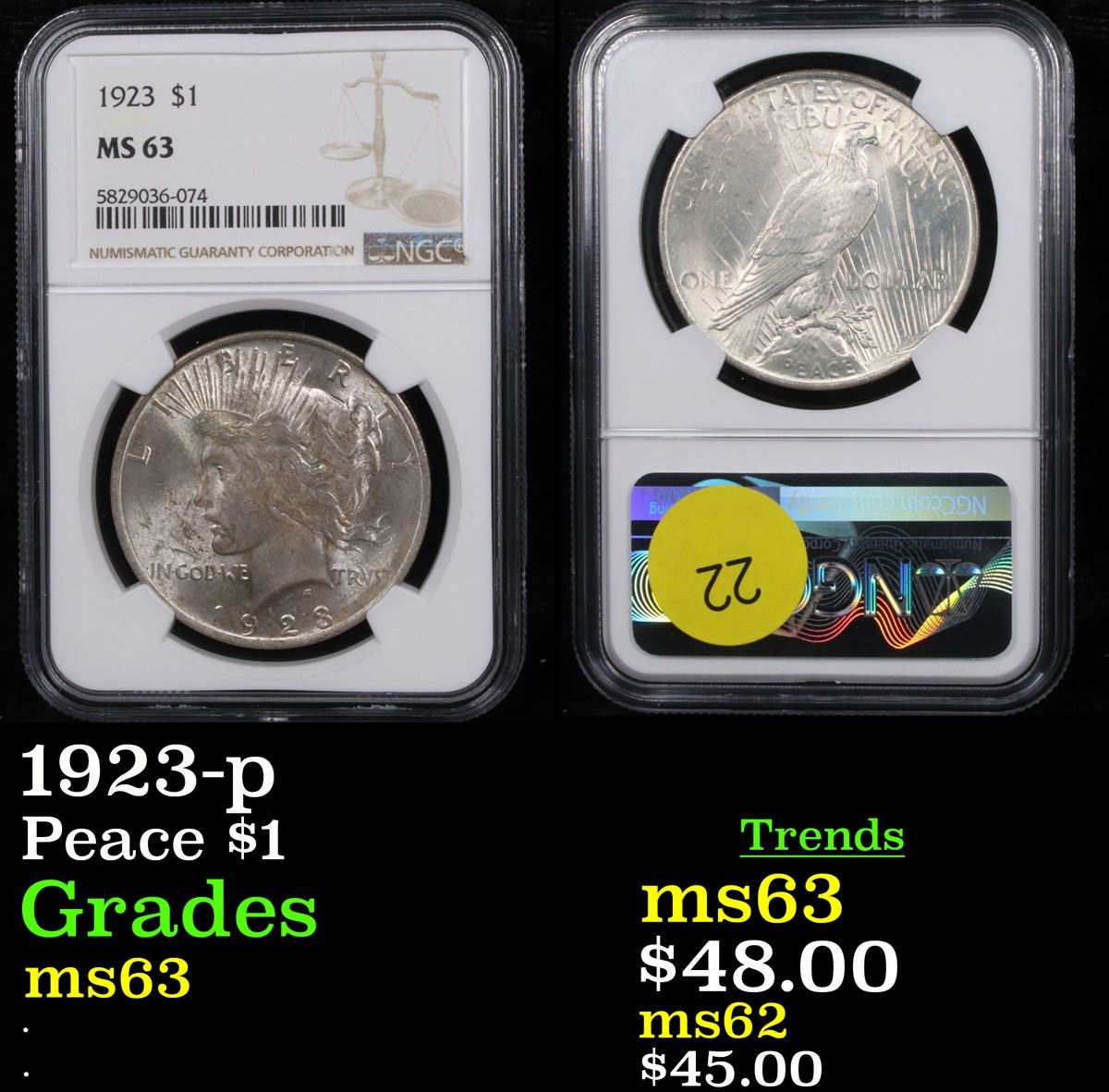 NGC 1923-p Peace Dollar $1 Graded ms63 By NGC.