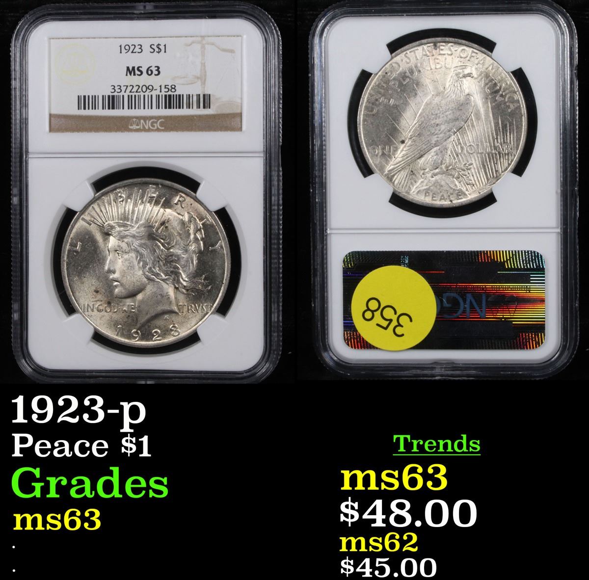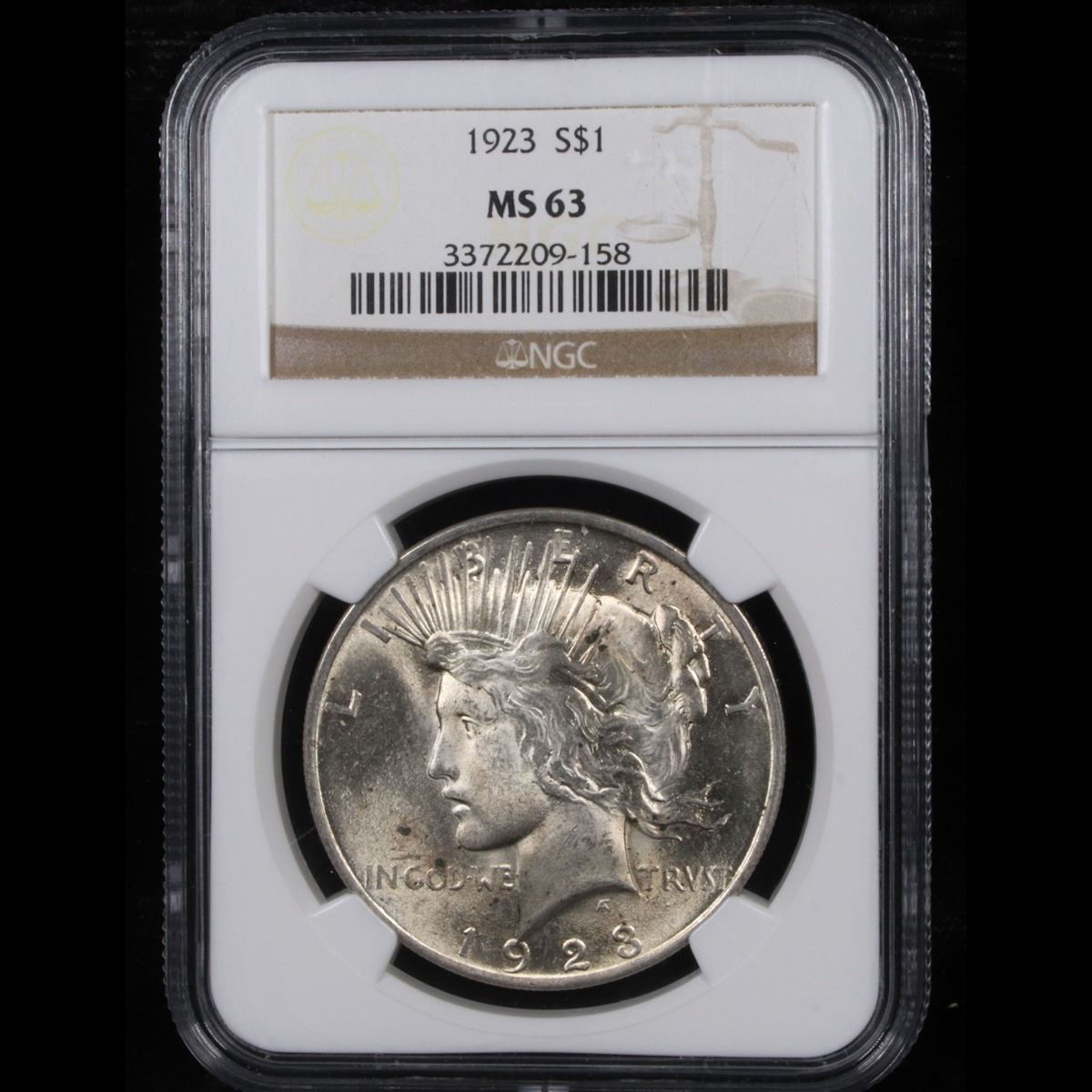 NGC 1923-p Peace Dollar $1 Graded ms63 By NGC.