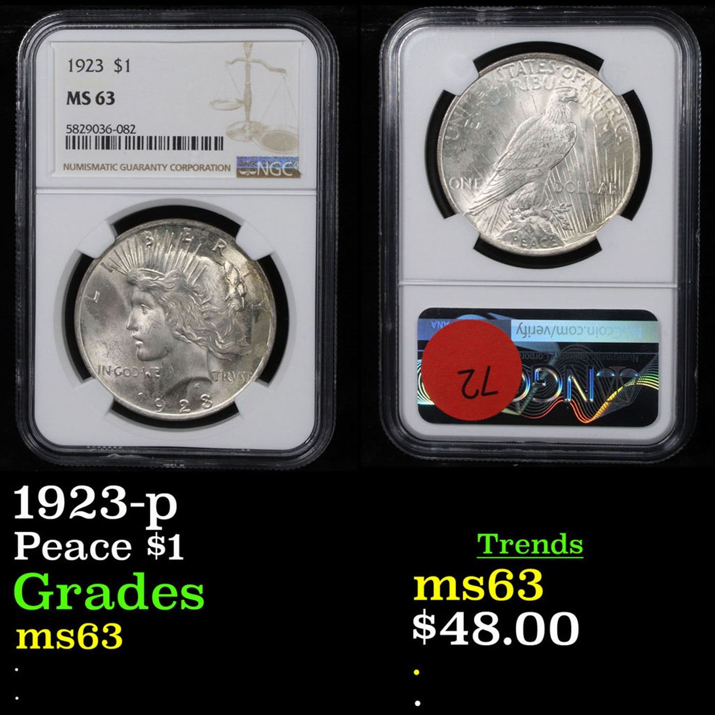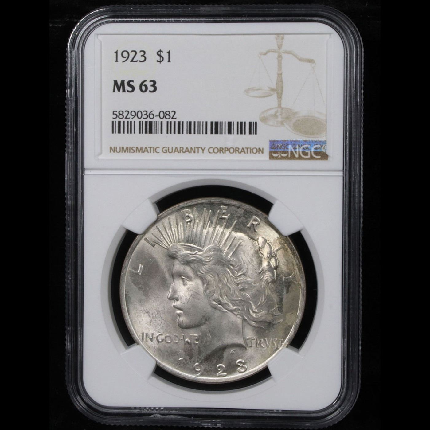NGC 1923-p Peace Dollar $1 Graded ms63 By NGC.