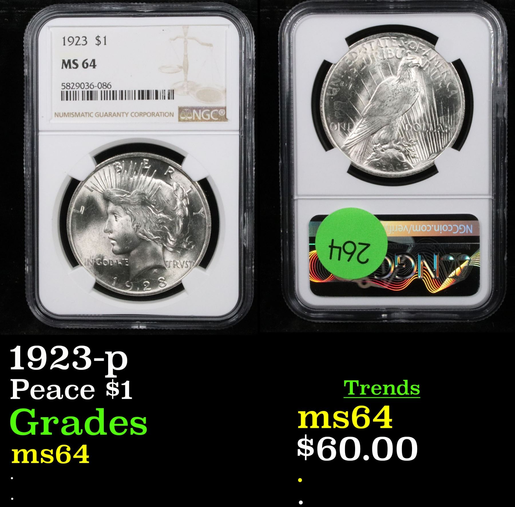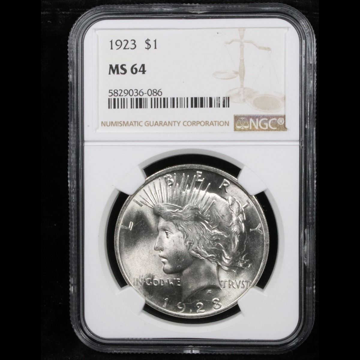 NGC 1923-p Peace Dollar $1 Graded ms64 By NGC.