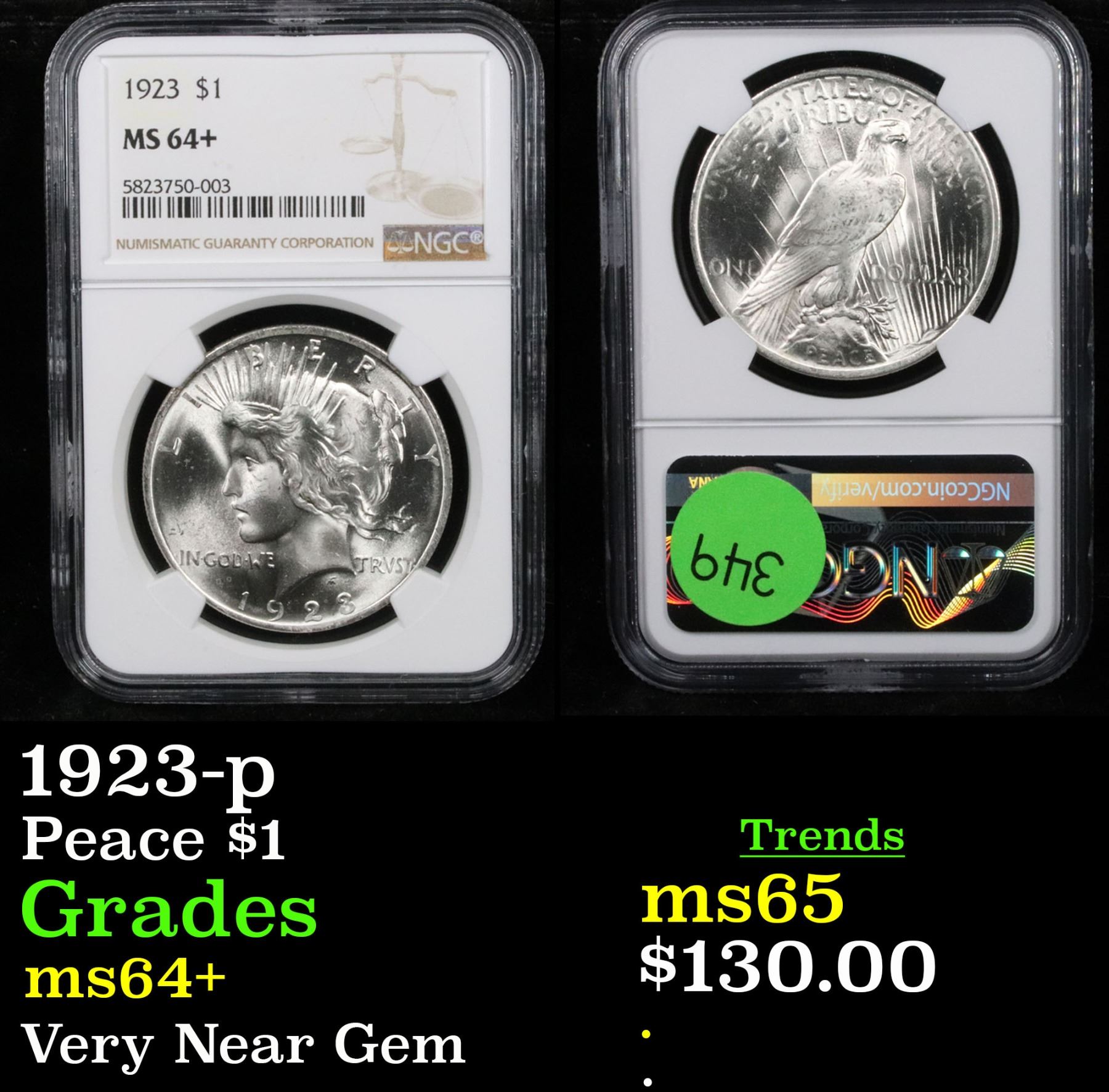 NGC 1923-p Peace Dollar $1 Graded ms64+ By NGC.