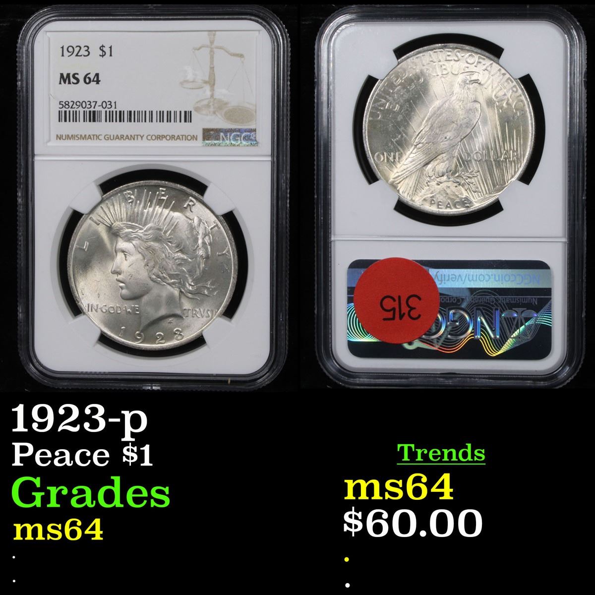 NGC 1923-p Peace Dollar $1 Graded ms64 By NGC.