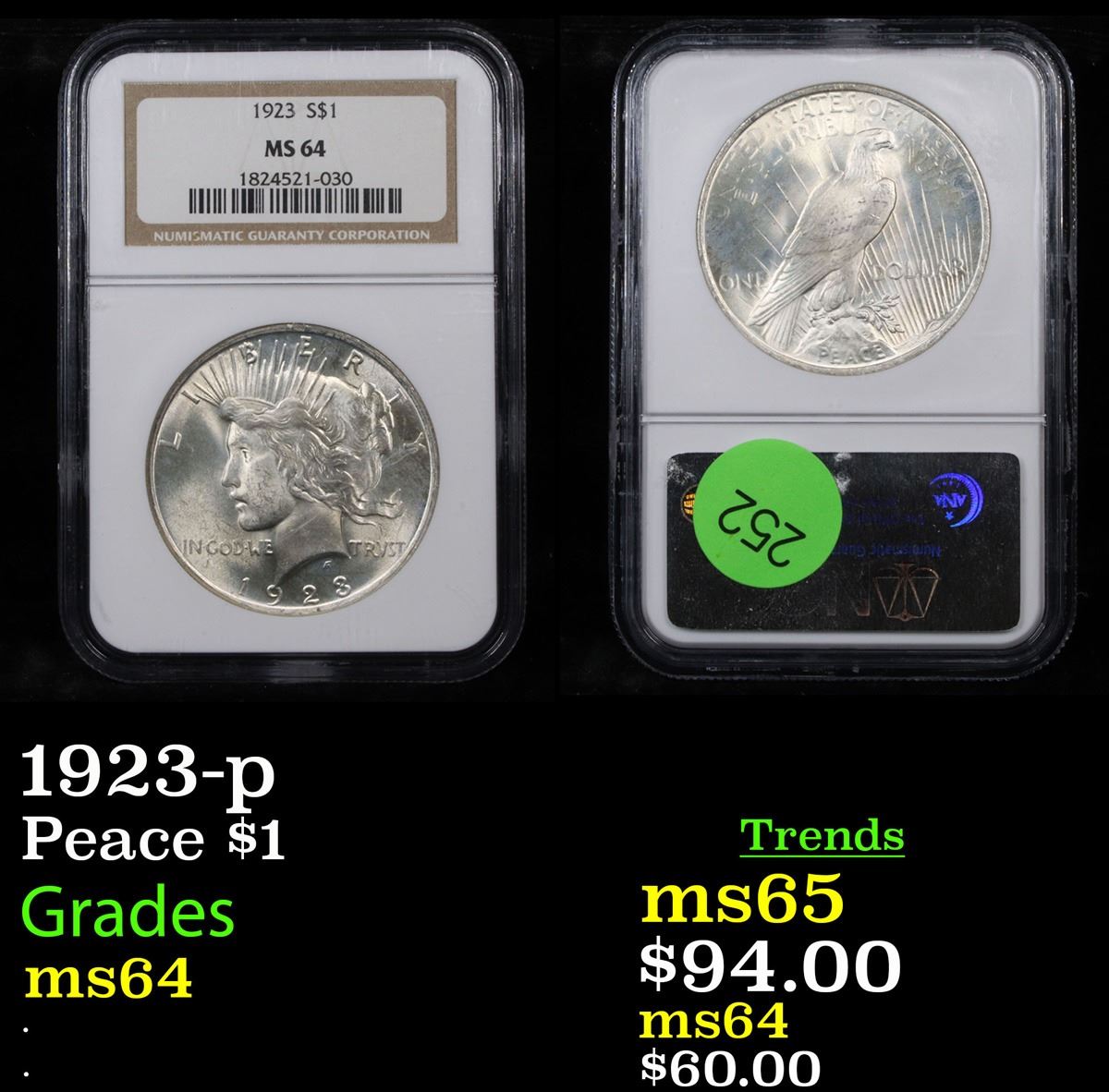 NGC 1923-p Peace Dollar $1 Graded ms64 By NGC.