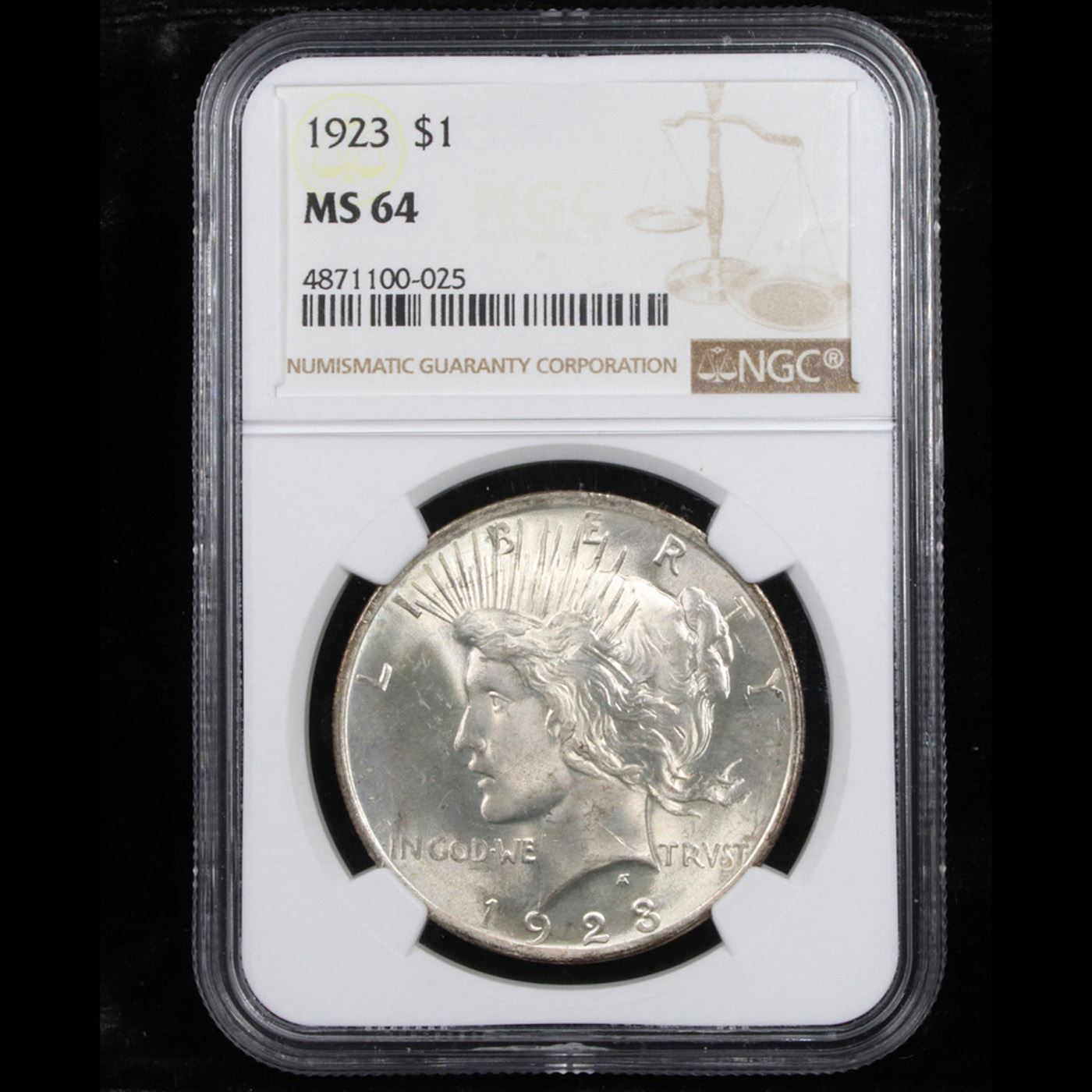 NGC 1923-p Peace Dollar $1 Graded ms64 By NGC.