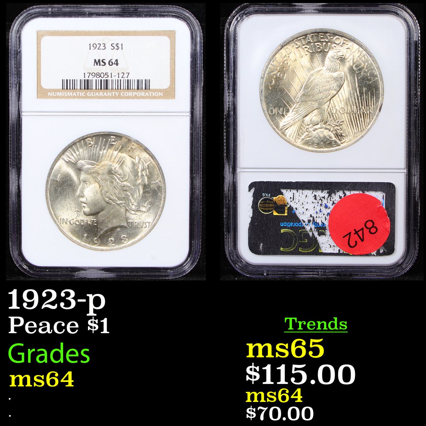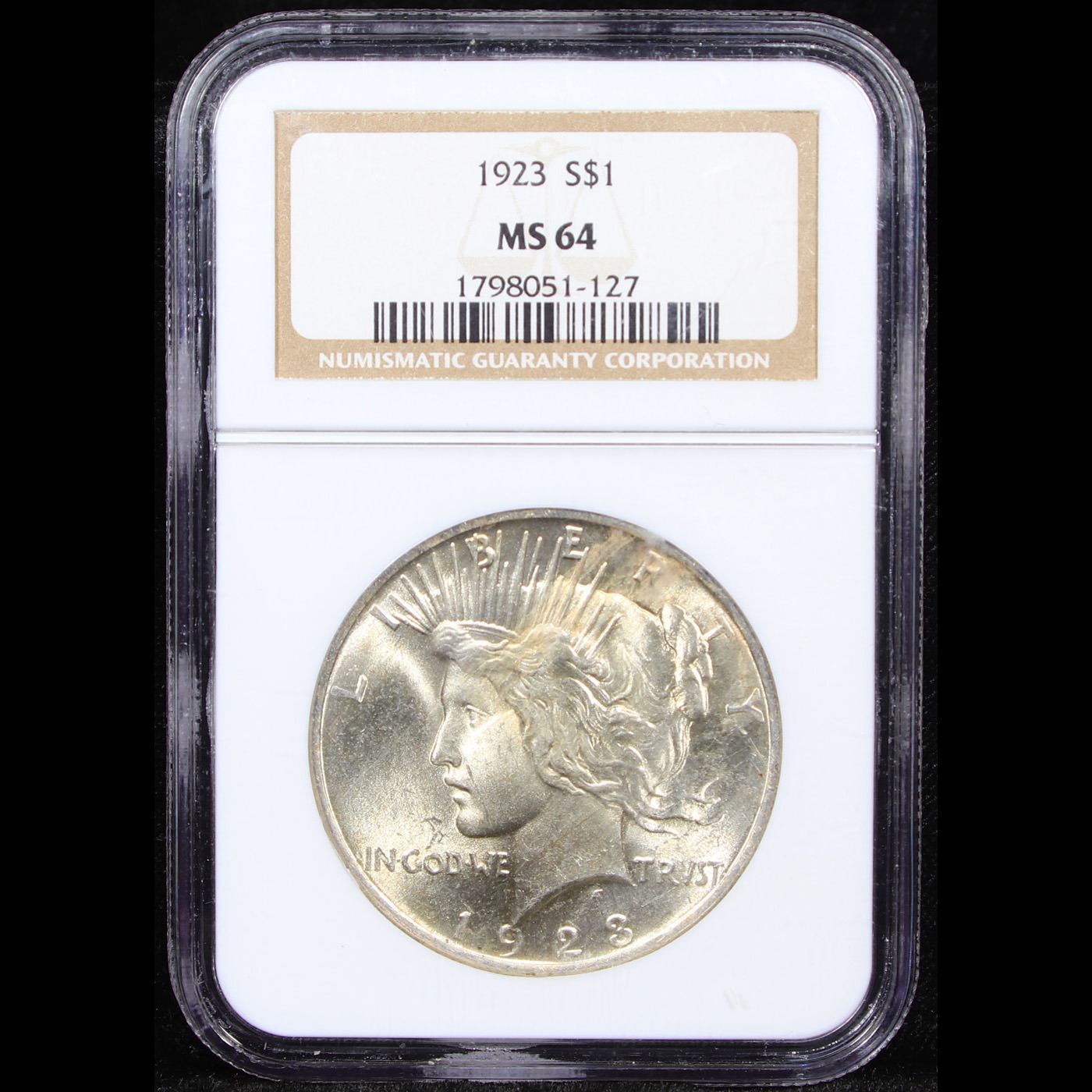 NGC 1923-p Peace Dollar $1 Graded ms64 By NGC.