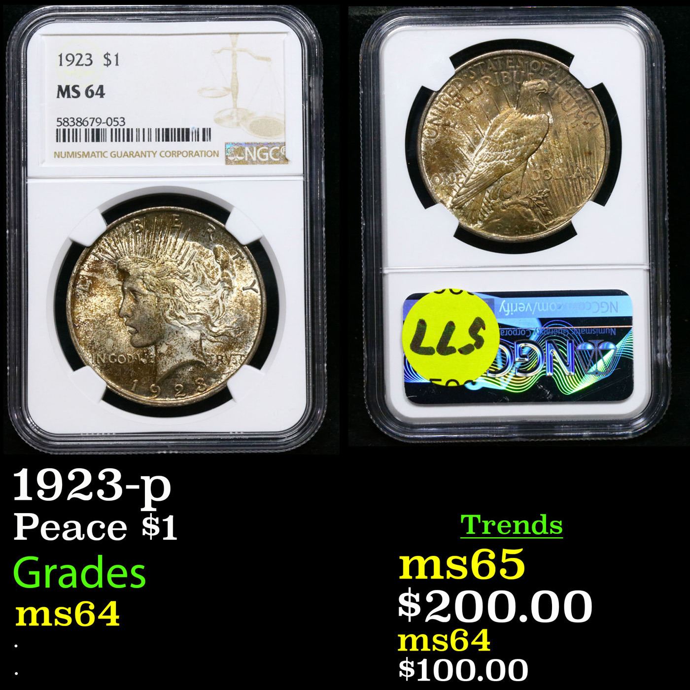 NGC 1923-p Peace Dollar $1 Graded ms64 By NGC.