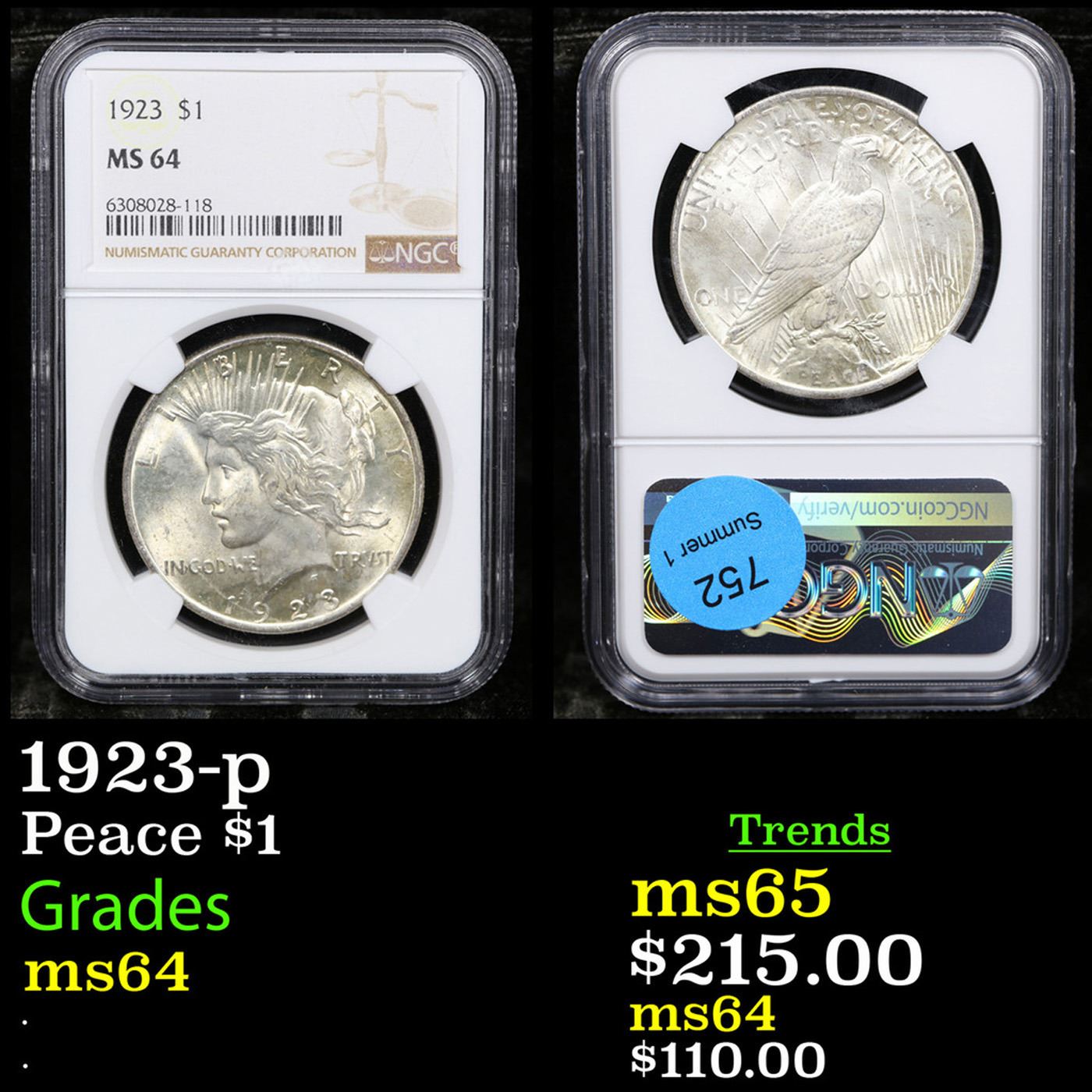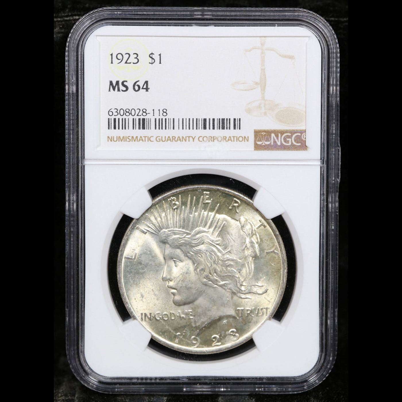 NGC 1923-p Peace Dollar $1 Graded ms64 By NGC.