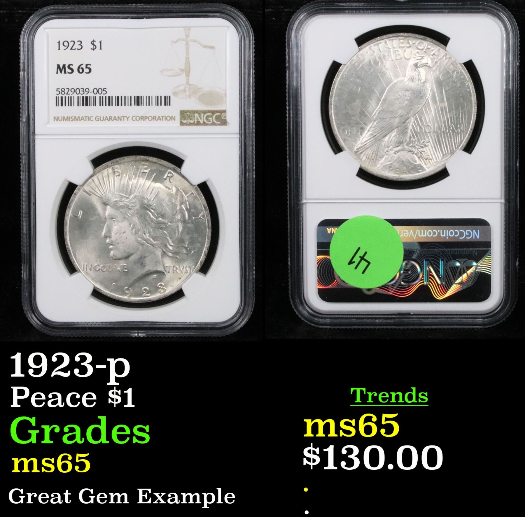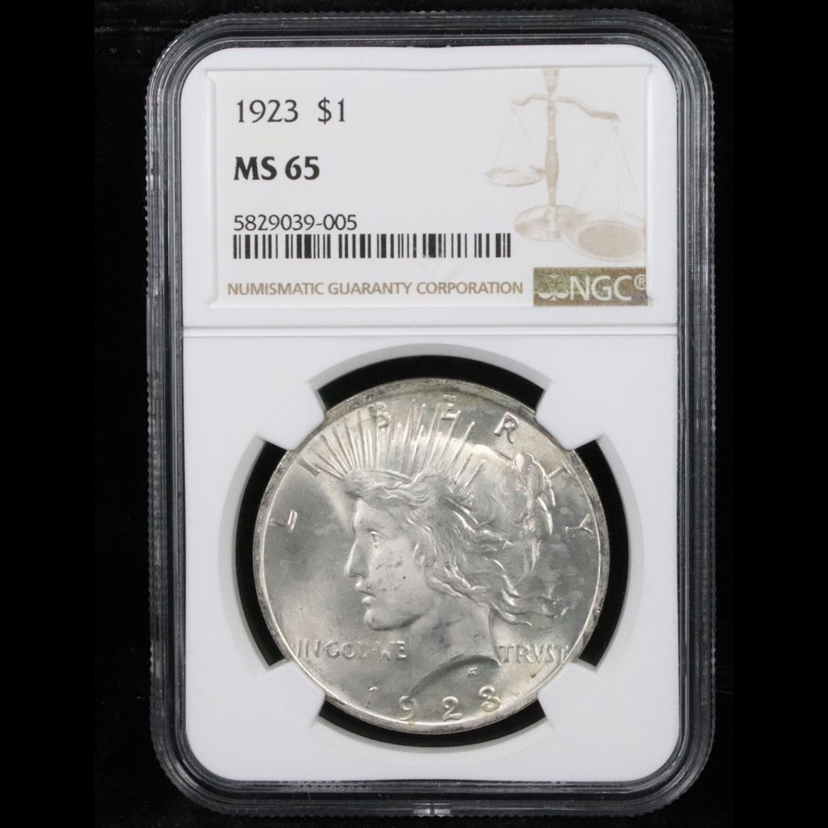 NGC 1923-p Peace Dollar $1 Graded ms65 By NGC.