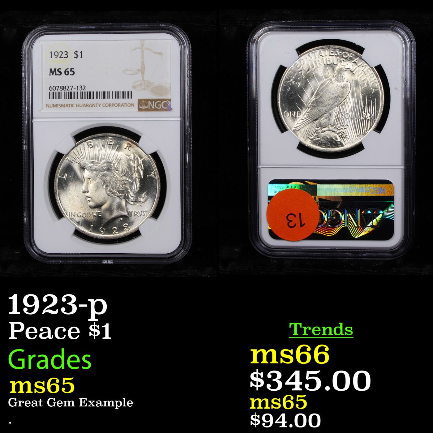 NGC 1923-p Peace Dollar $1 Graded ms65 By NGC.