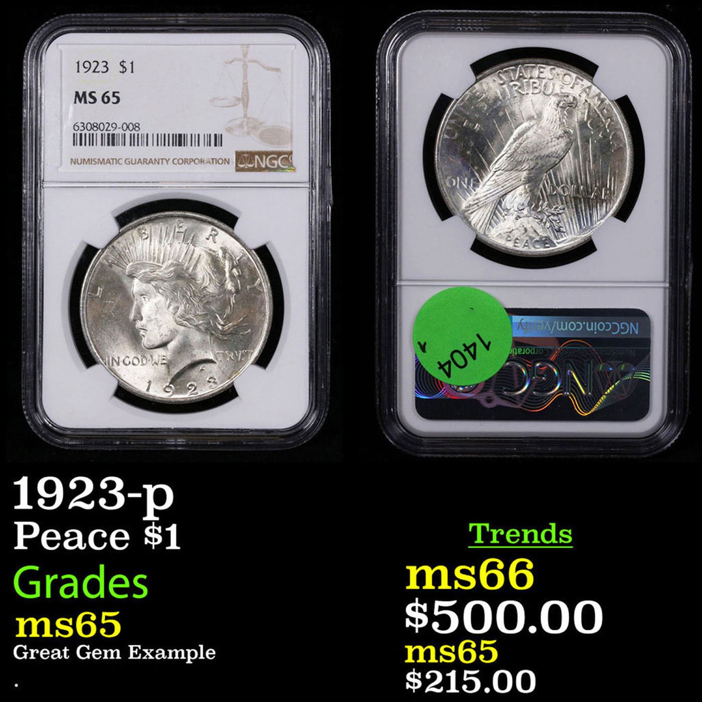 NGC 1923-p Peace Dollar $1 Graded ms65 By NGC.