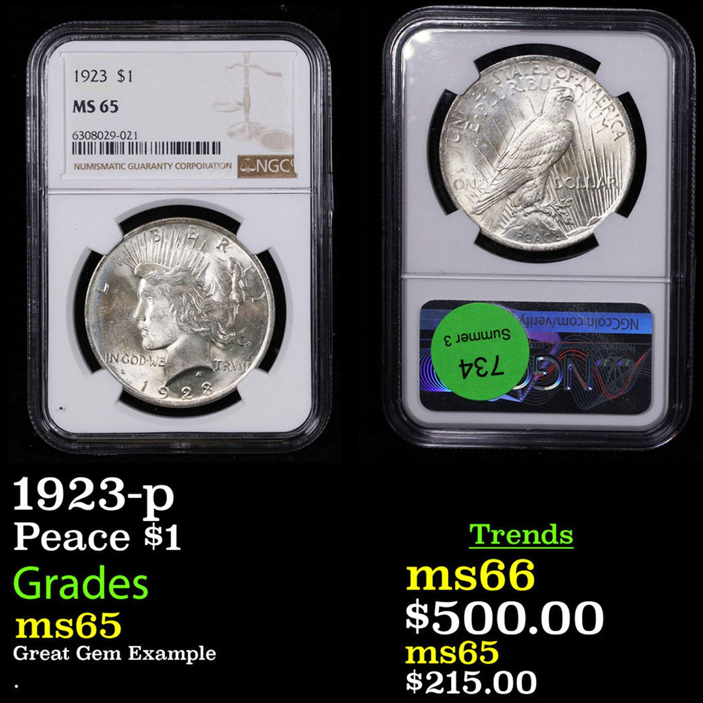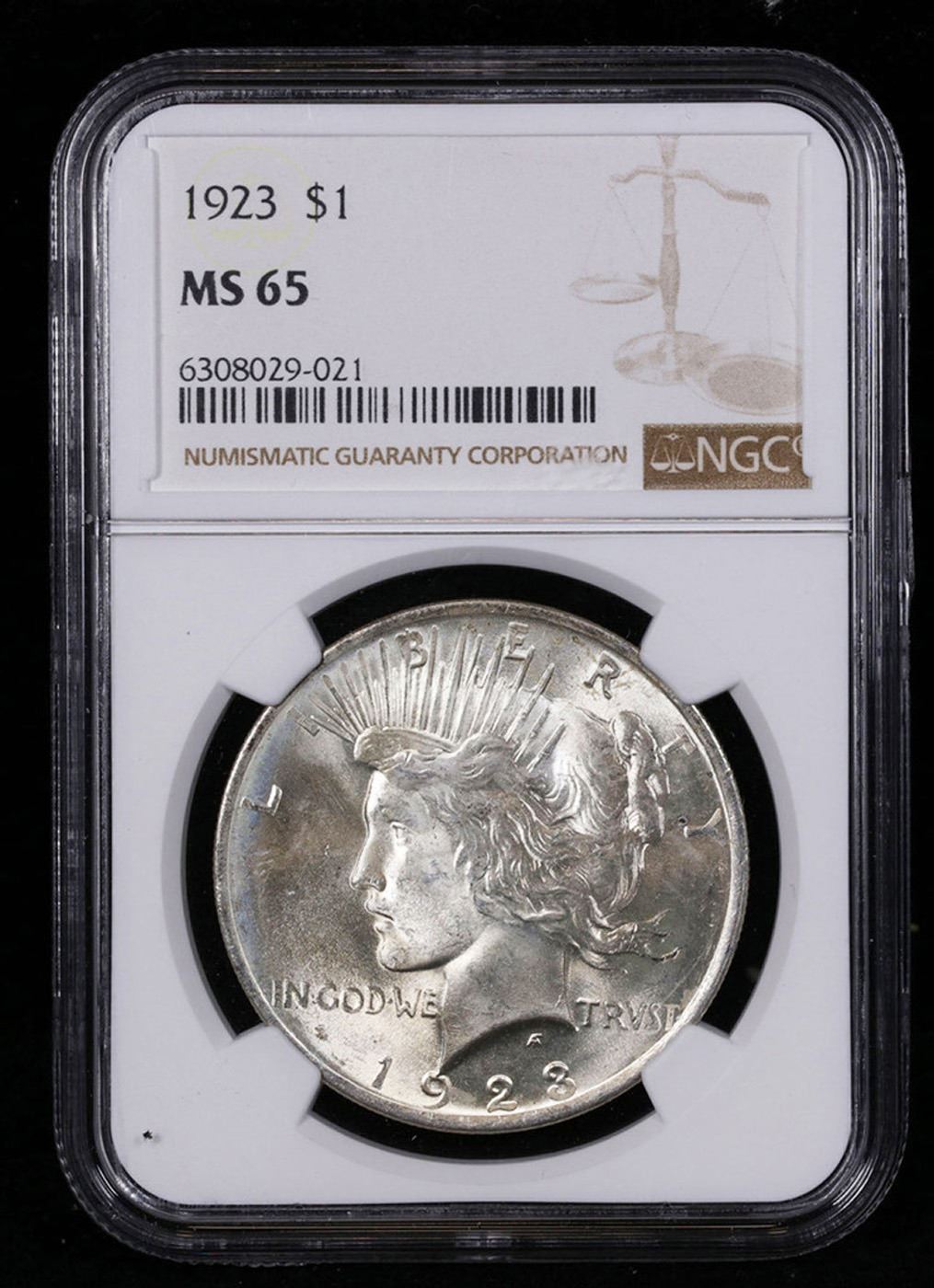 NGC 1923-p Peace Dollar $1 Graded ms65 By NGC.