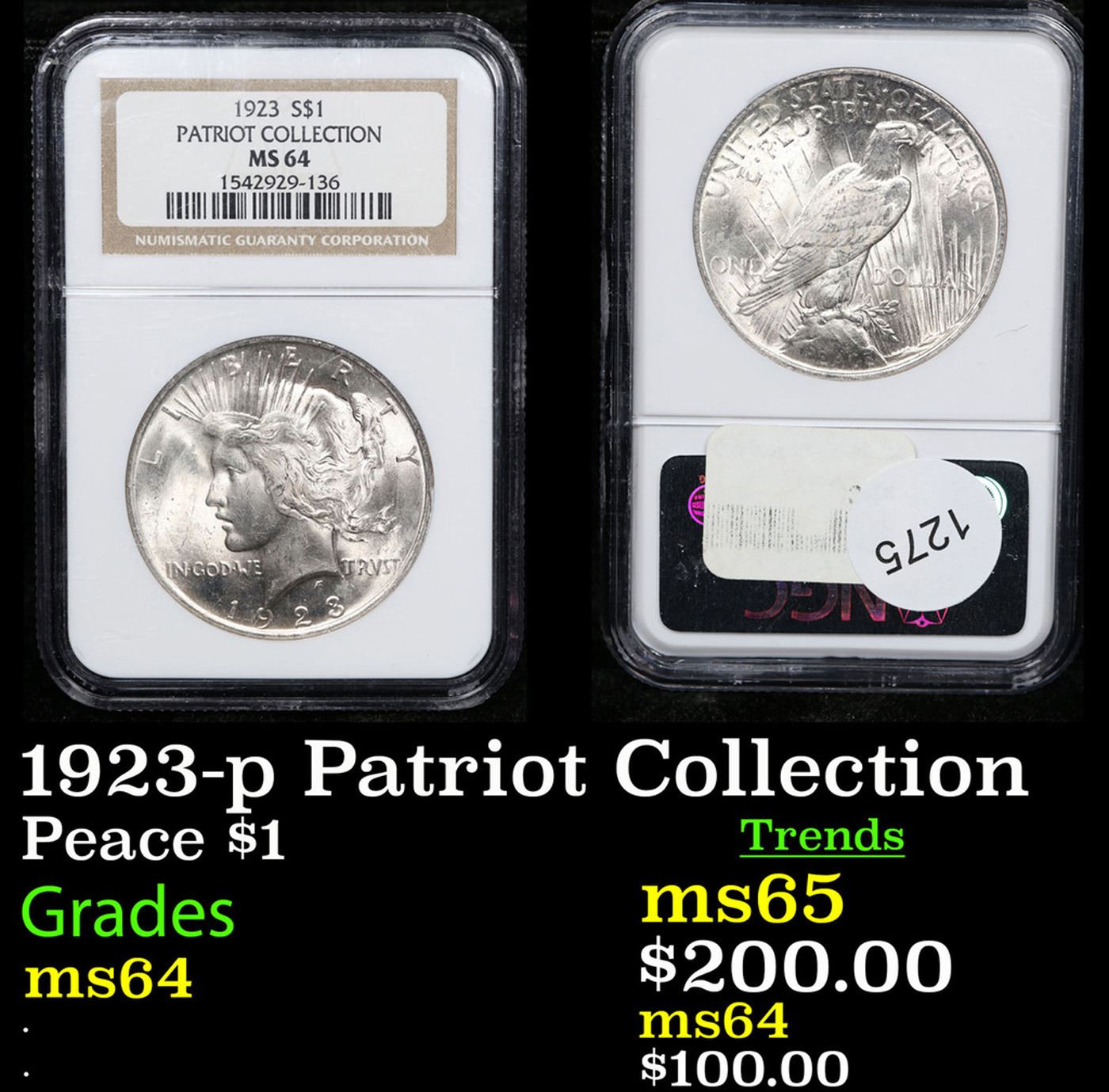 NGC 1923-p Patriot Collection Peace Dollar $1 Graded ms64 By NGC.