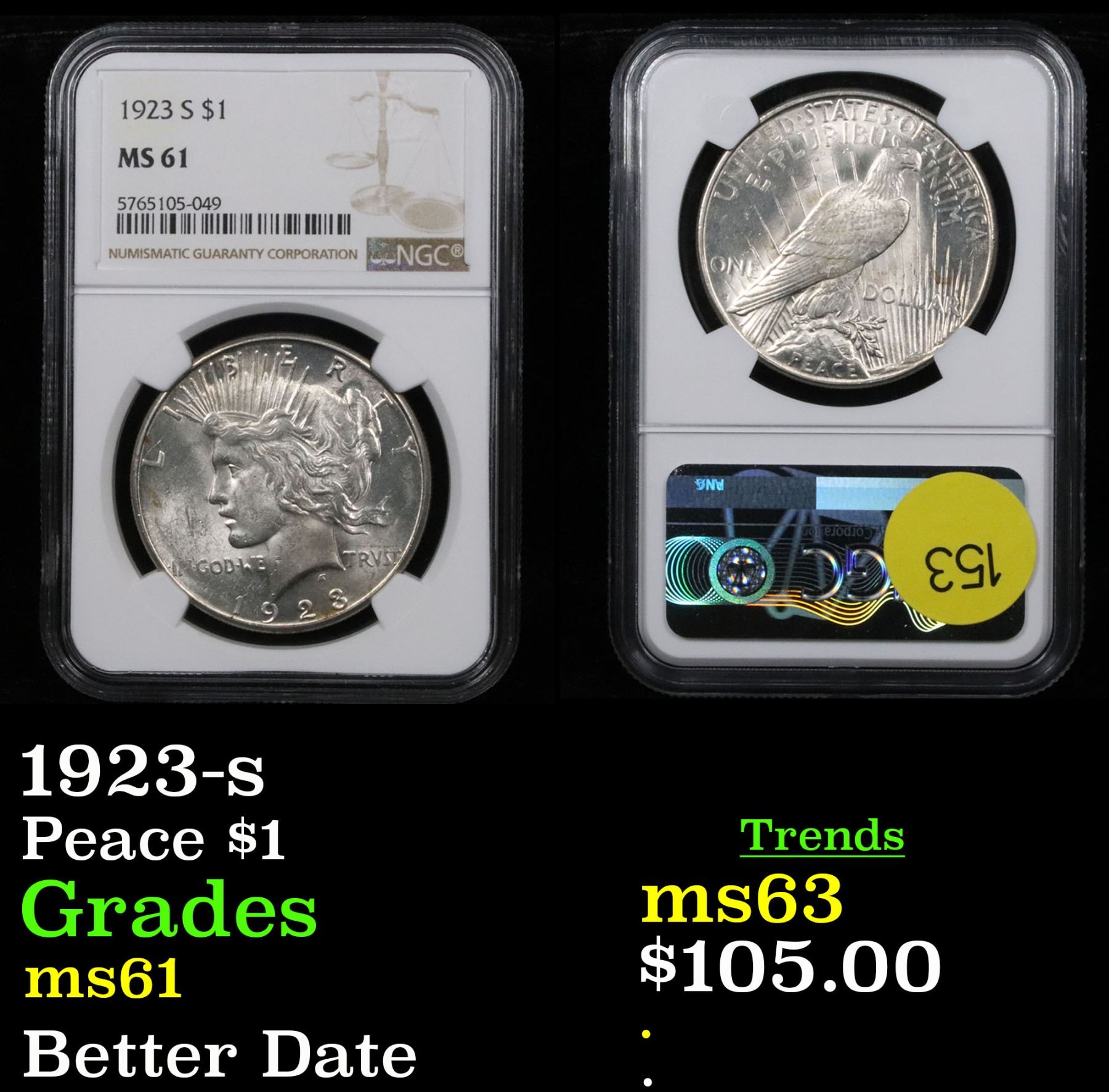NGC 1923-s Better Date . Peace Dollar $1 Graded ms61 By NGC.
