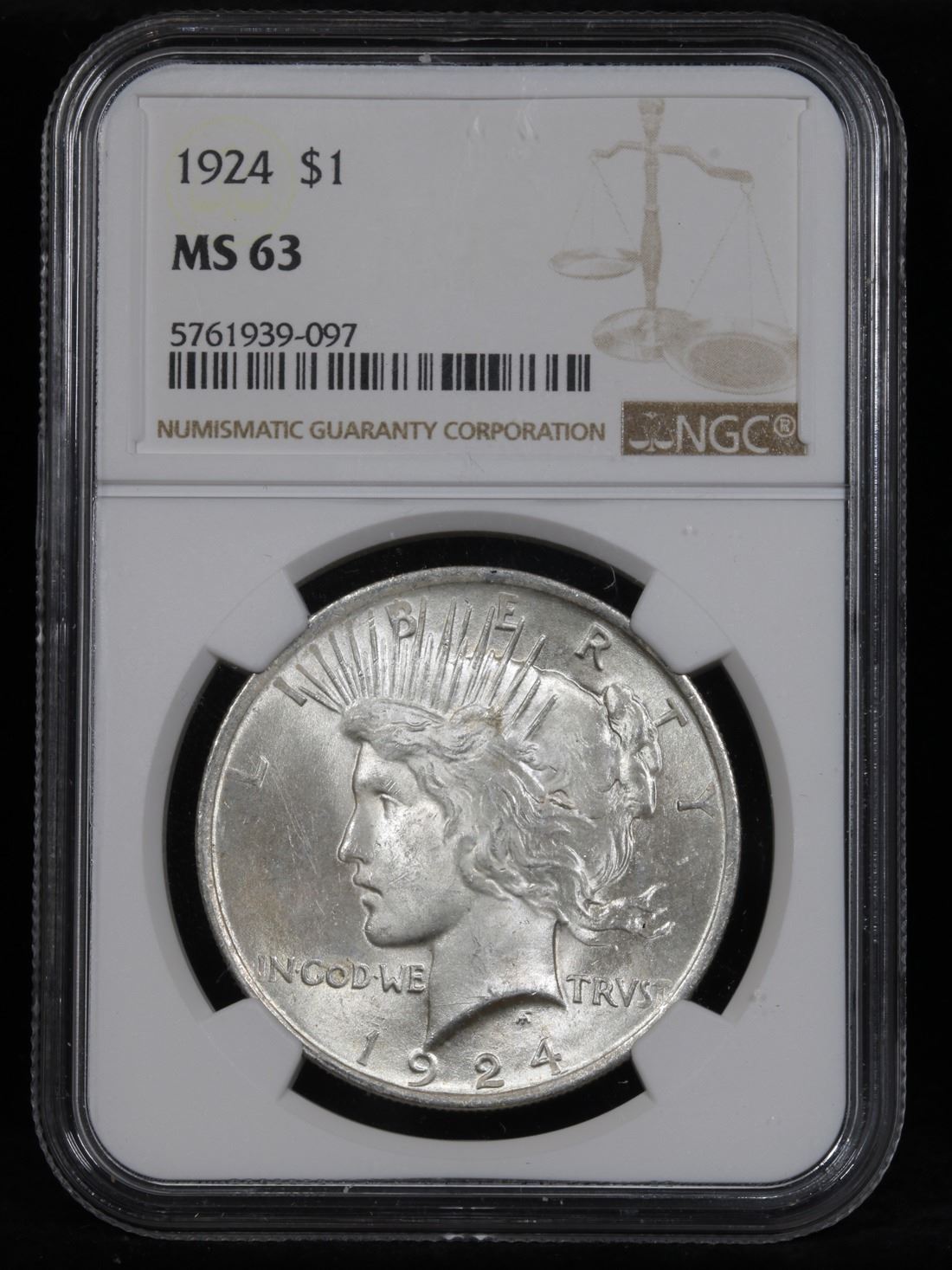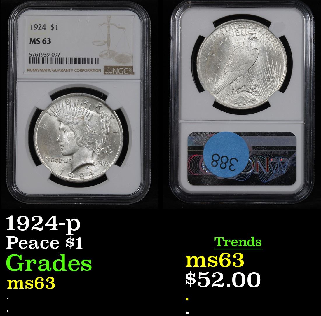 NGC 1924-p . . Peace Dollar $1 Graded ms63 By NGC.