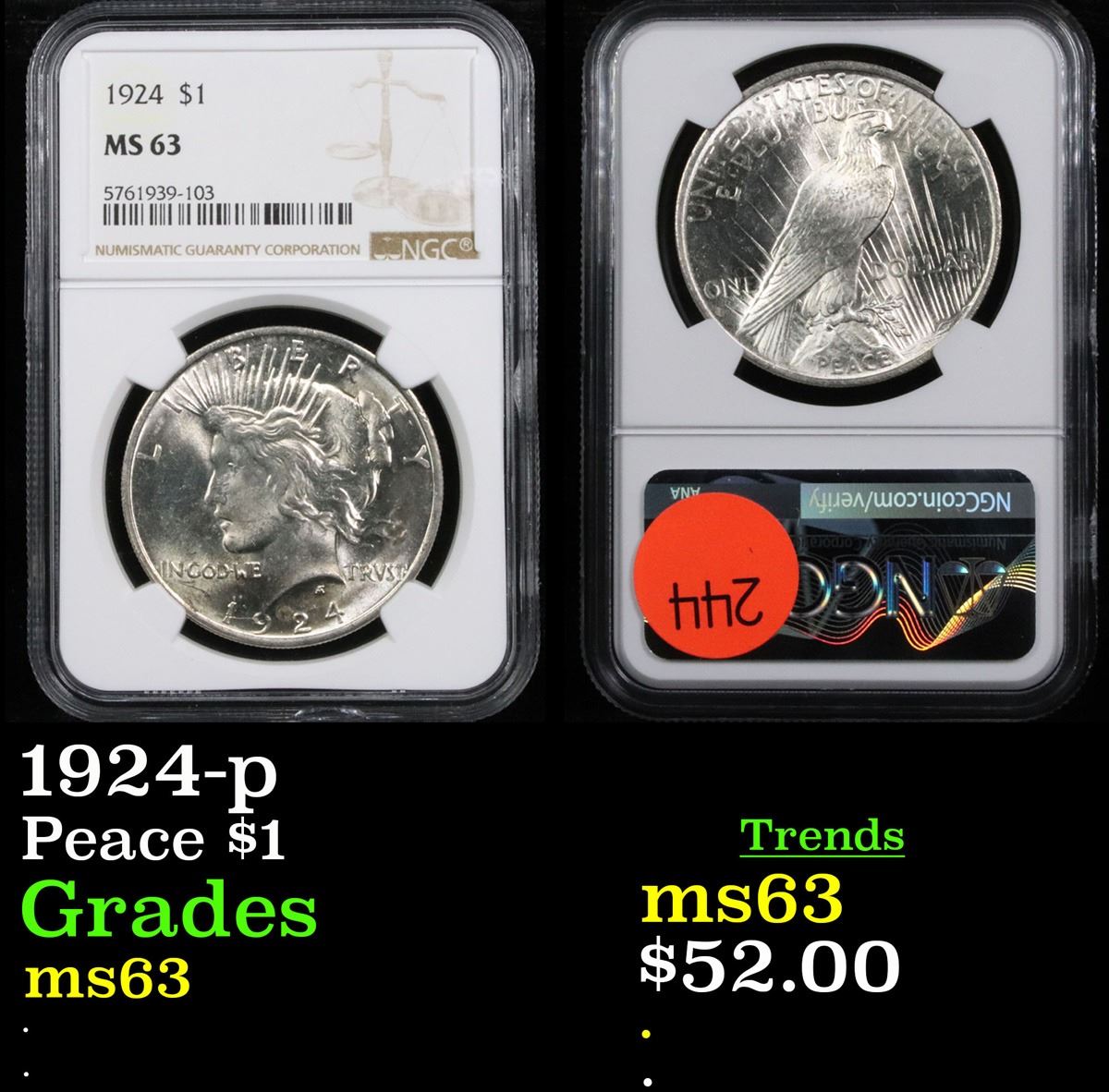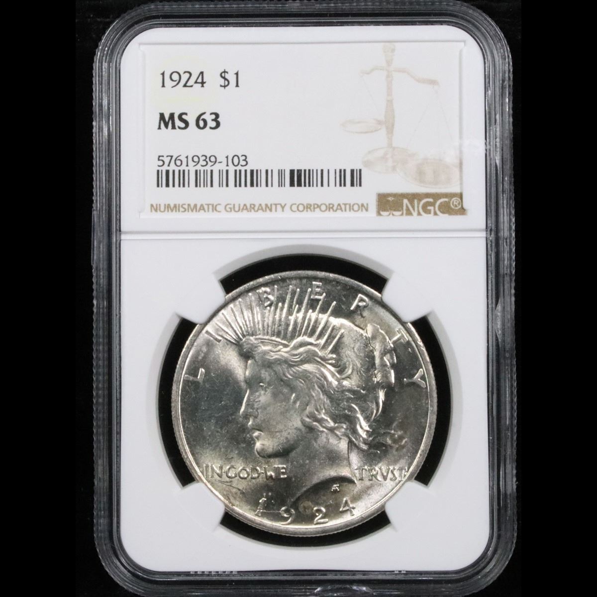 NGC 1924-p Peace Dollar $1 Graded ms63 By NGC.