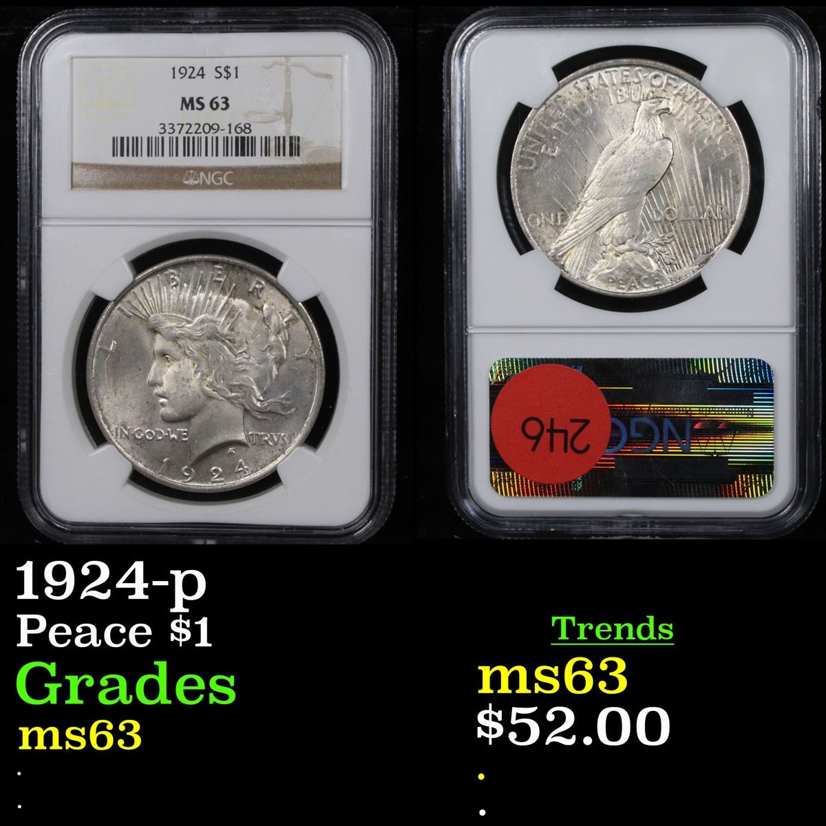 NGC 1924-p Peace Dollar $1 Graded ms63 By NGC.