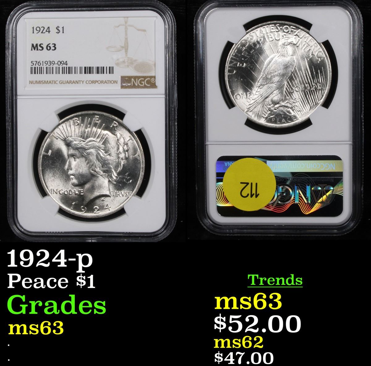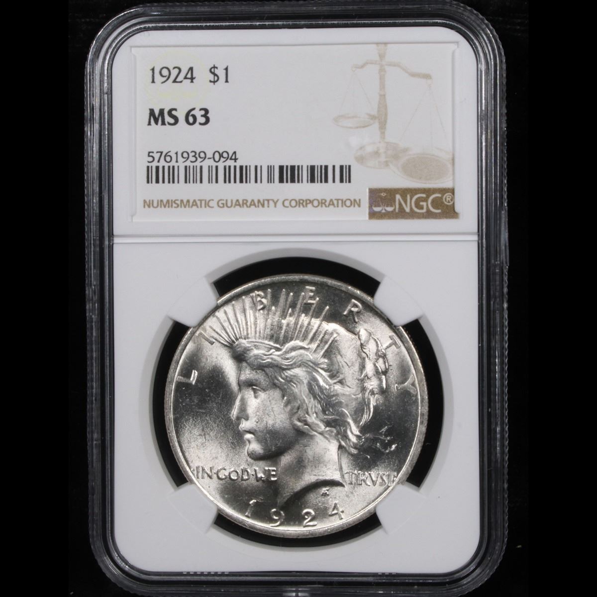 NGC 1924-p Peace Dollar $1 Graded ms63 By NGC.