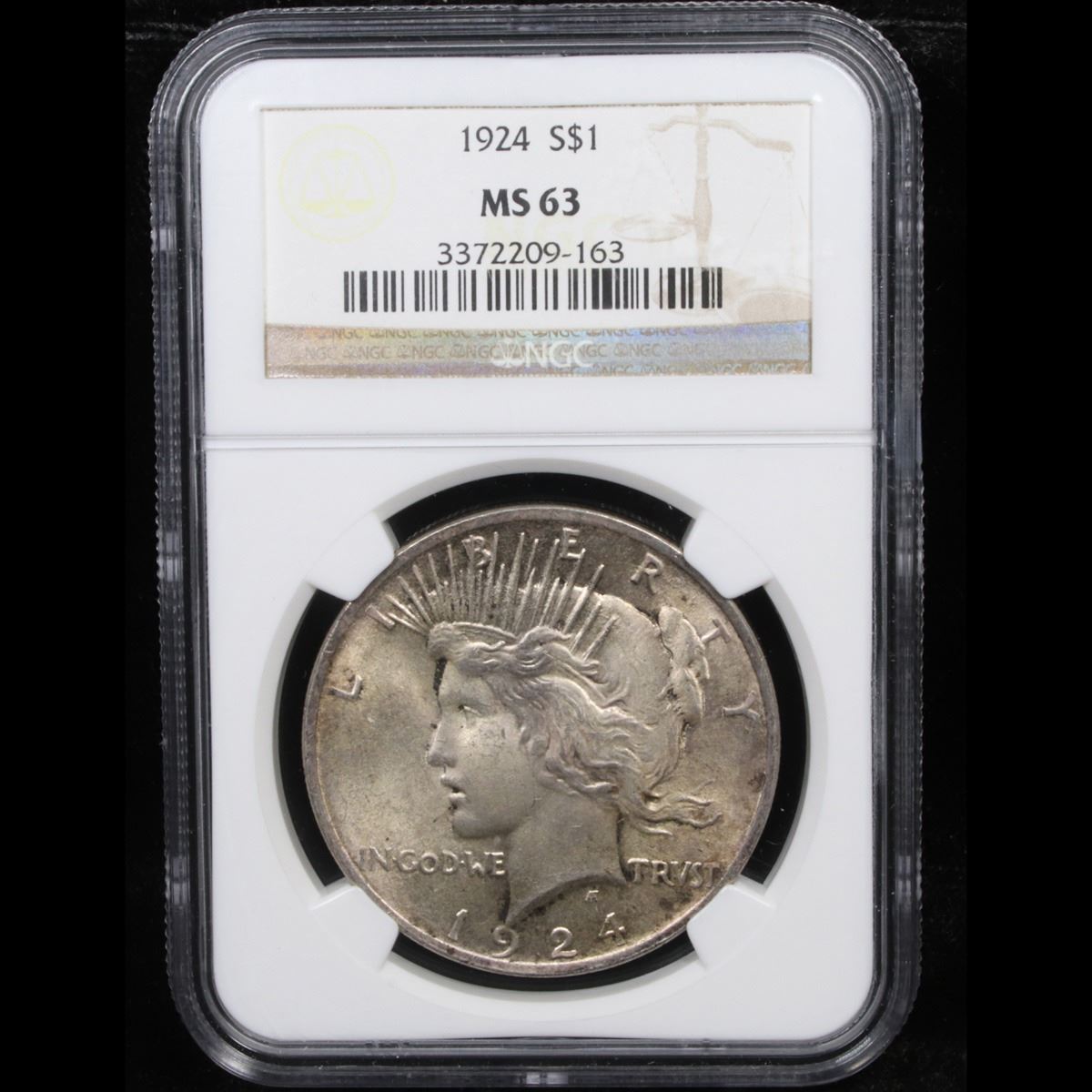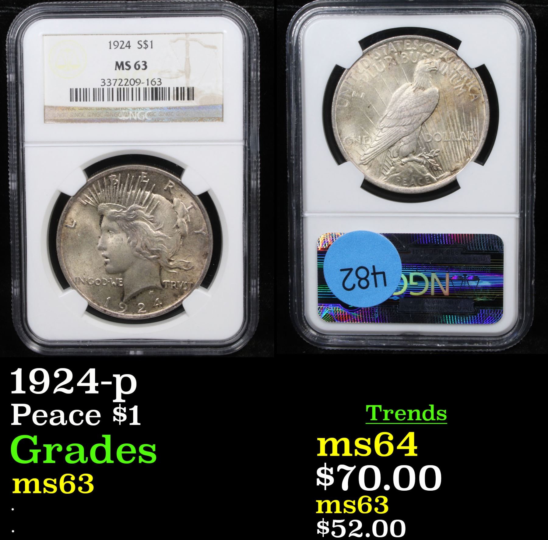 NGC 1924-p Peace Dollar $1 Graded ms63 By NGC.