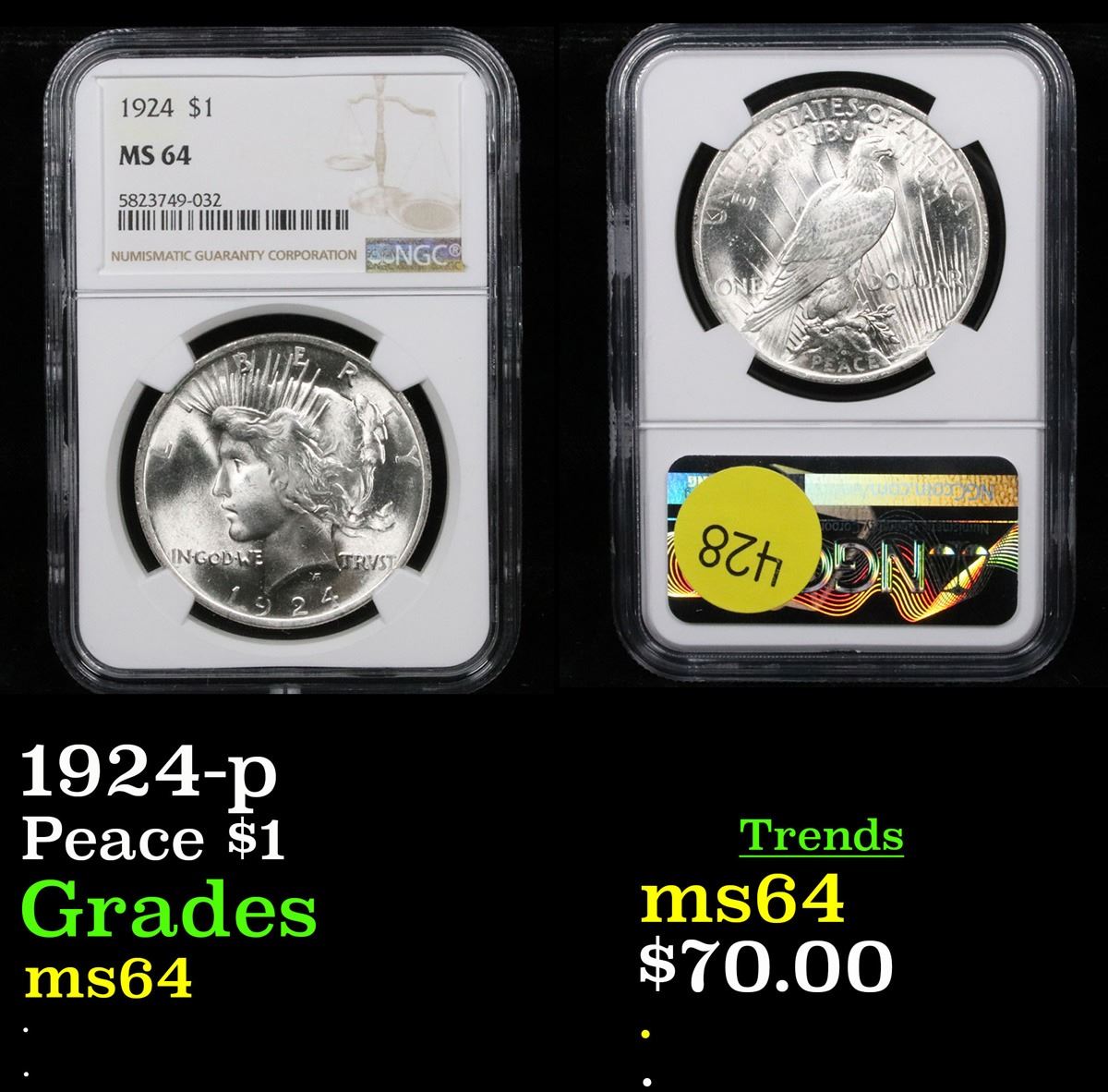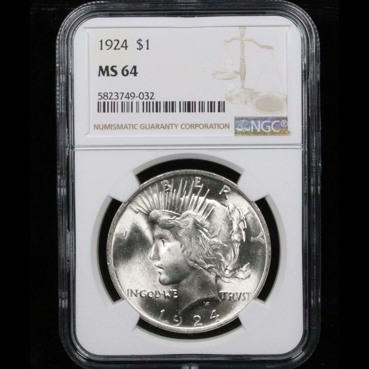 NGC 1924-p Peace Dollar $1 Graded ms64 By NGC.