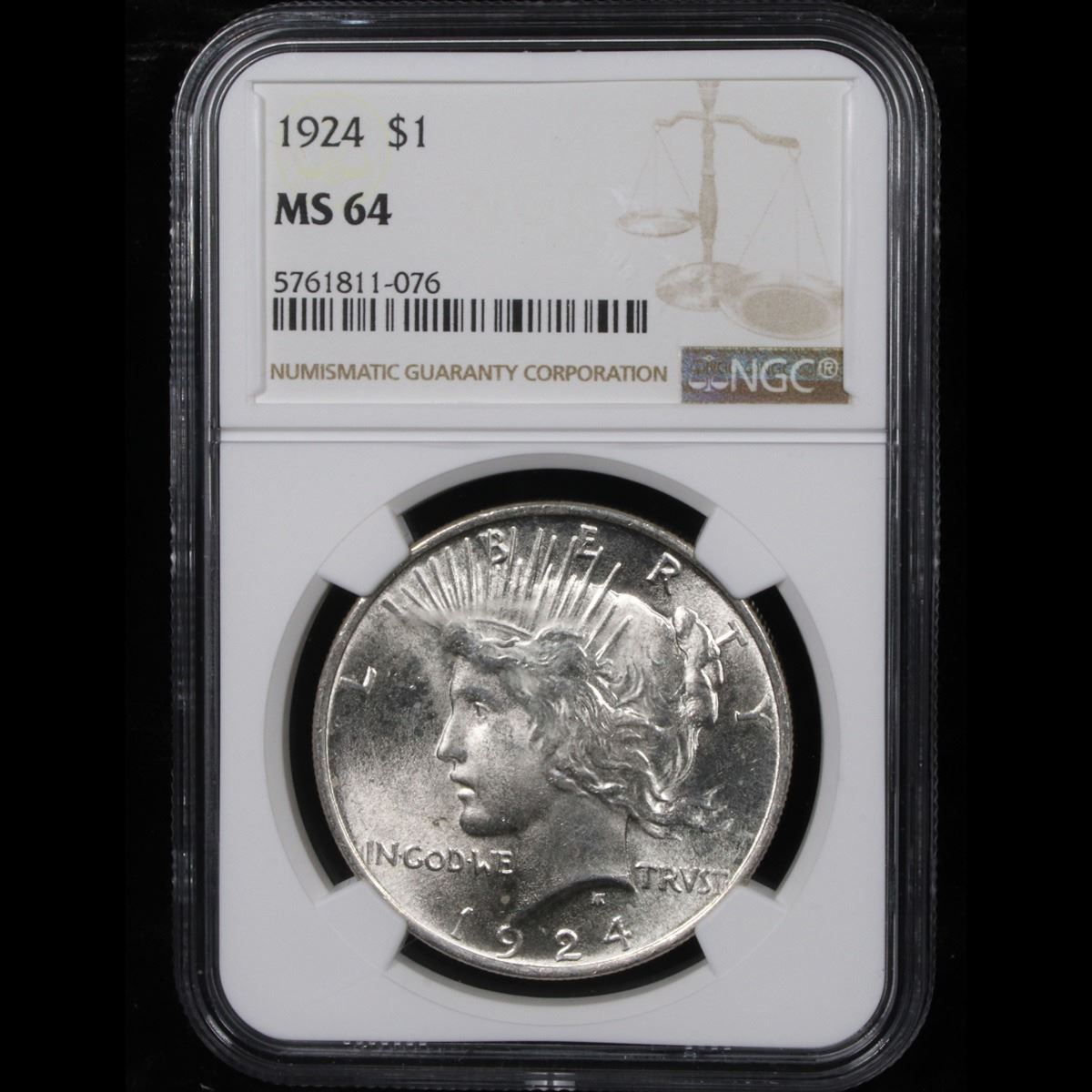 NGC 1924-p Peace Dollar $1 Graded ms64 By NGC.
