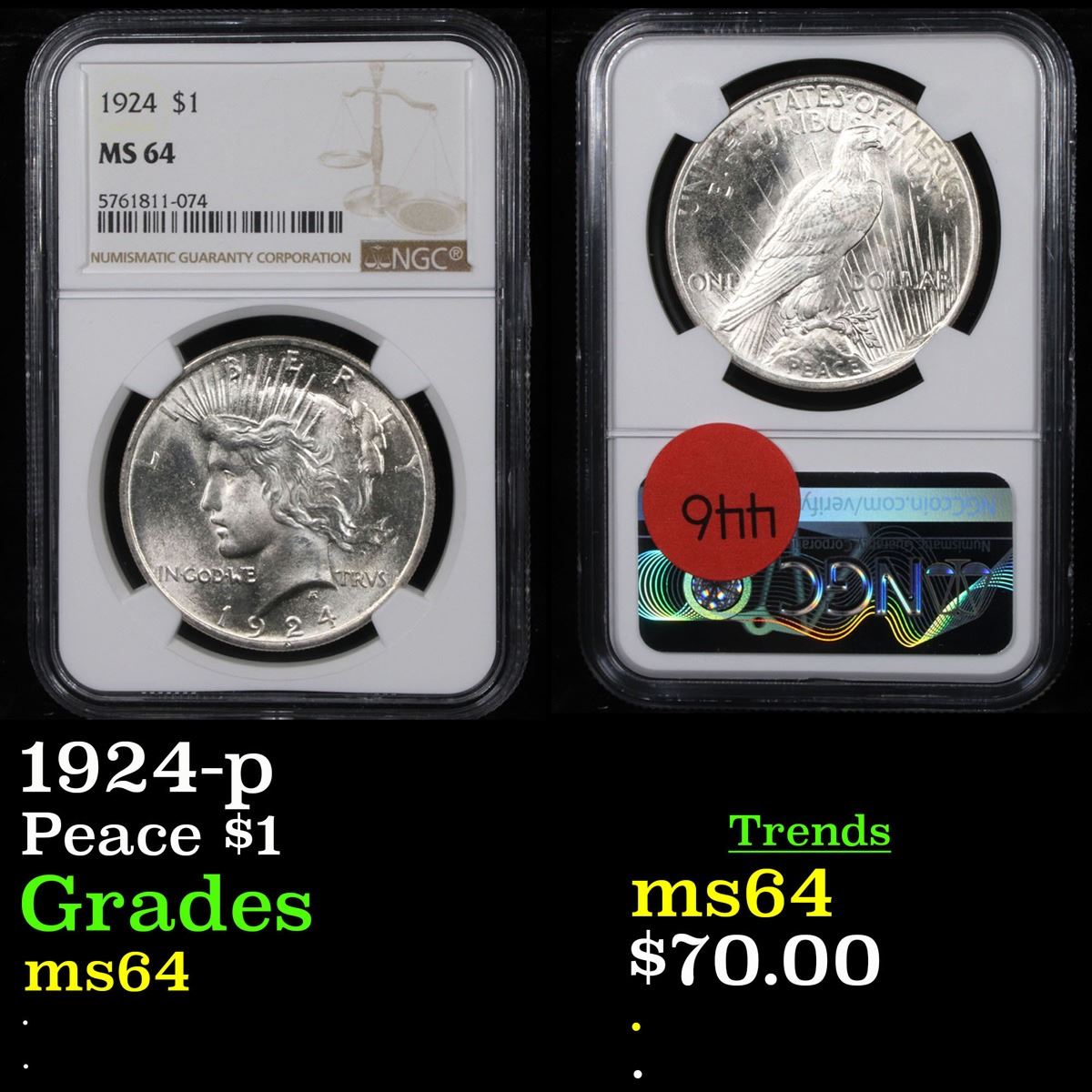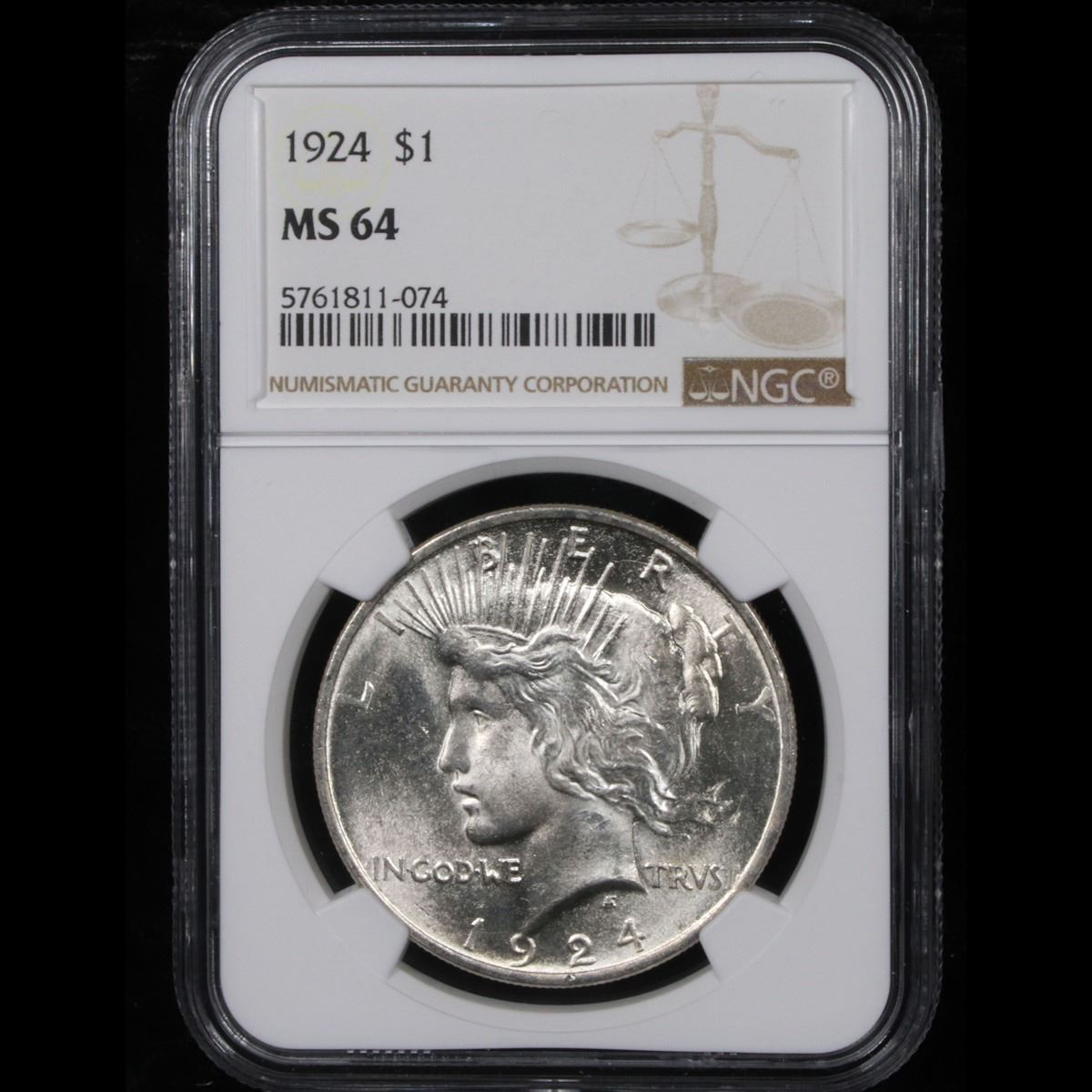 NGC 1924-p Peace Dollar $1 Graded ms64 By NGC.