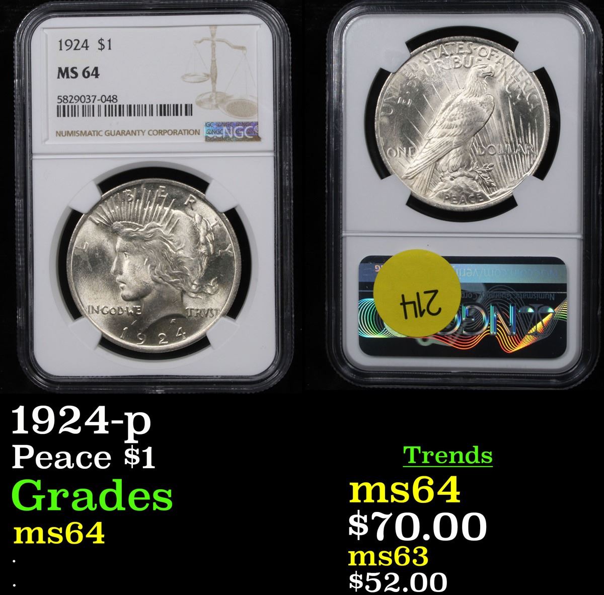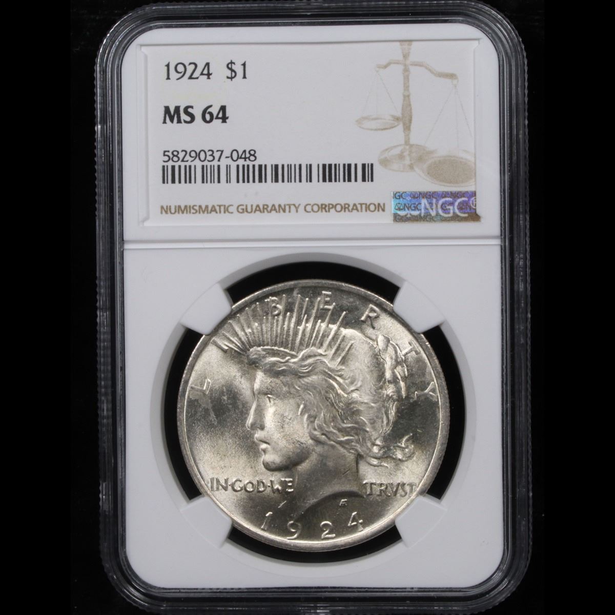 NGC 1924-p Peace Dollar $1 Graded ms64 By NGC.