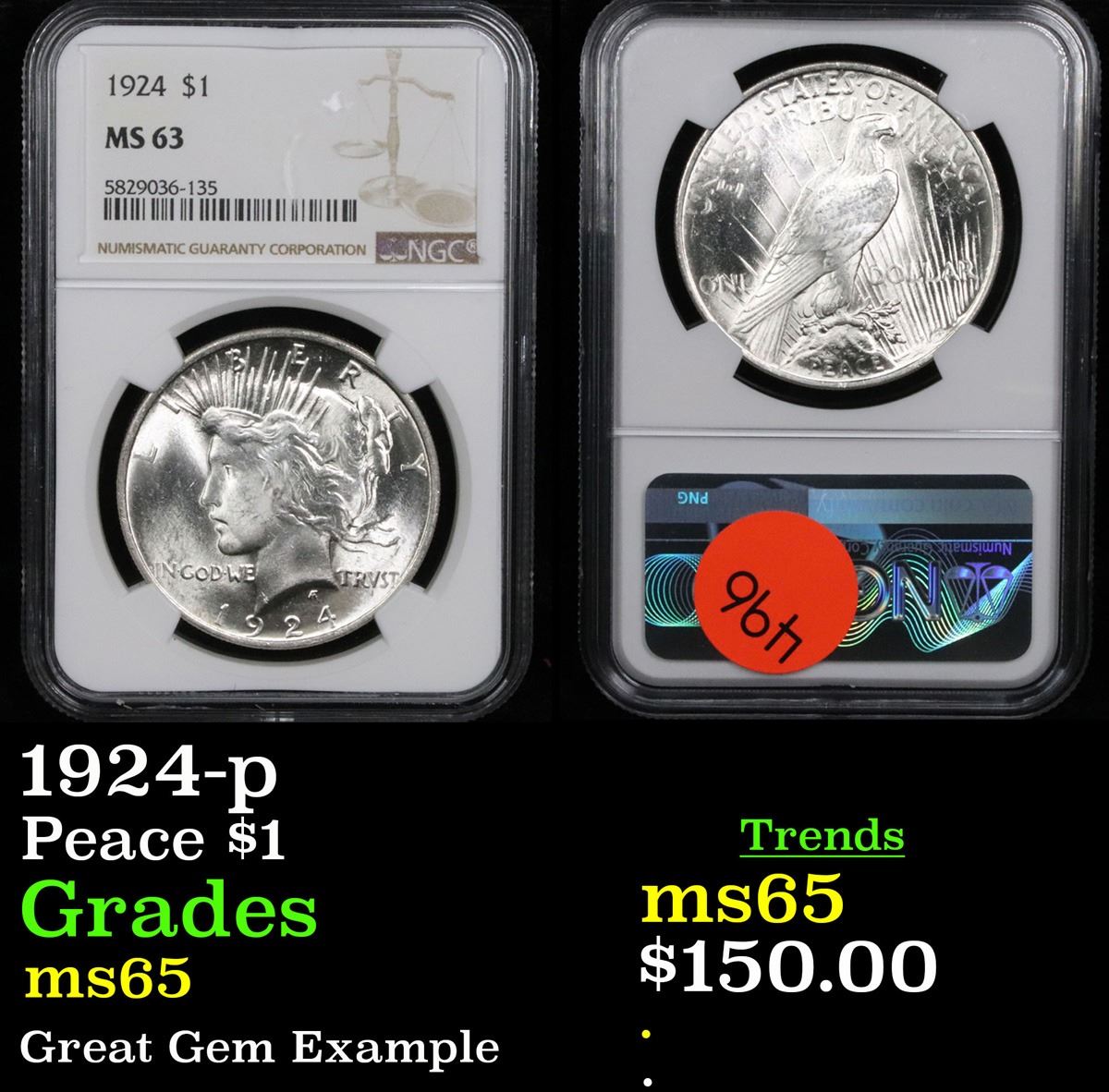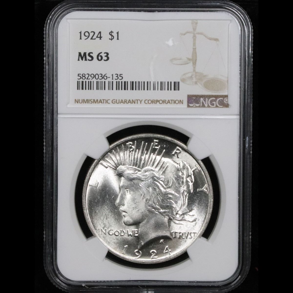NGC 1924-p Peace Dollar $1 Graded ms65 By NGC.