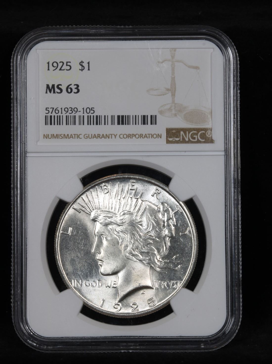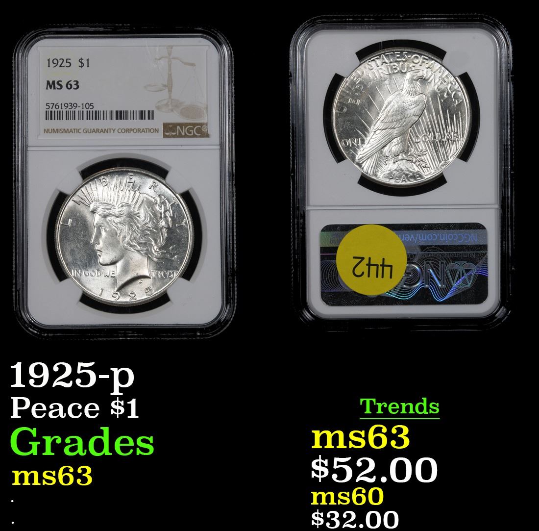 NGC 1925-p . . Peace Dollar $1 Graded ms63 By NGC.