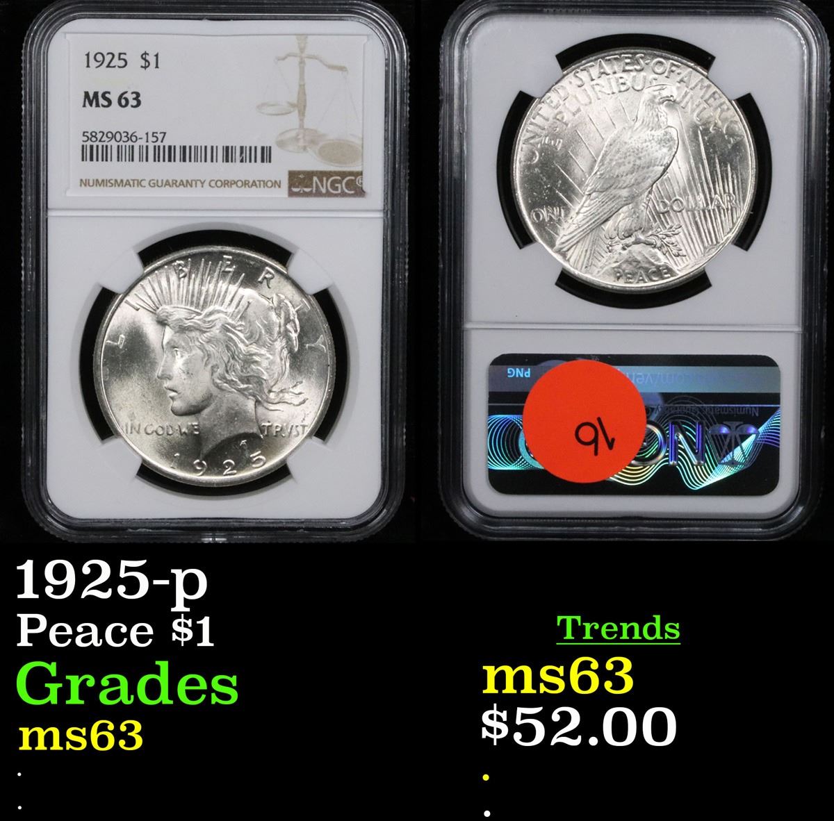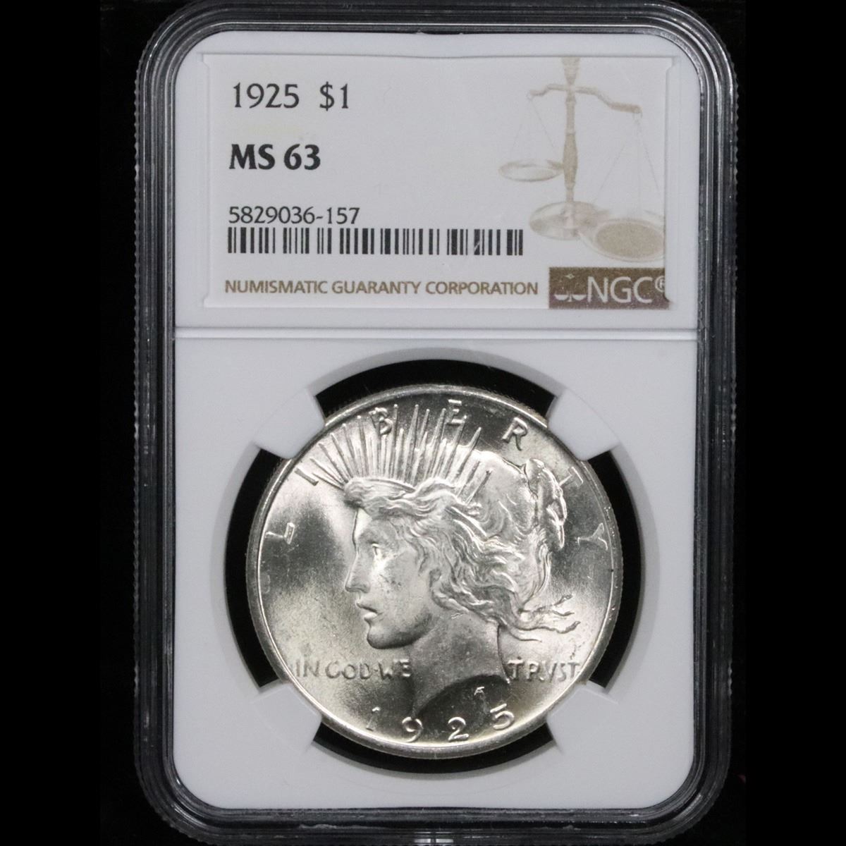 NGC 1925-p Peace Dollar $1 Graded ms63 By NGC.