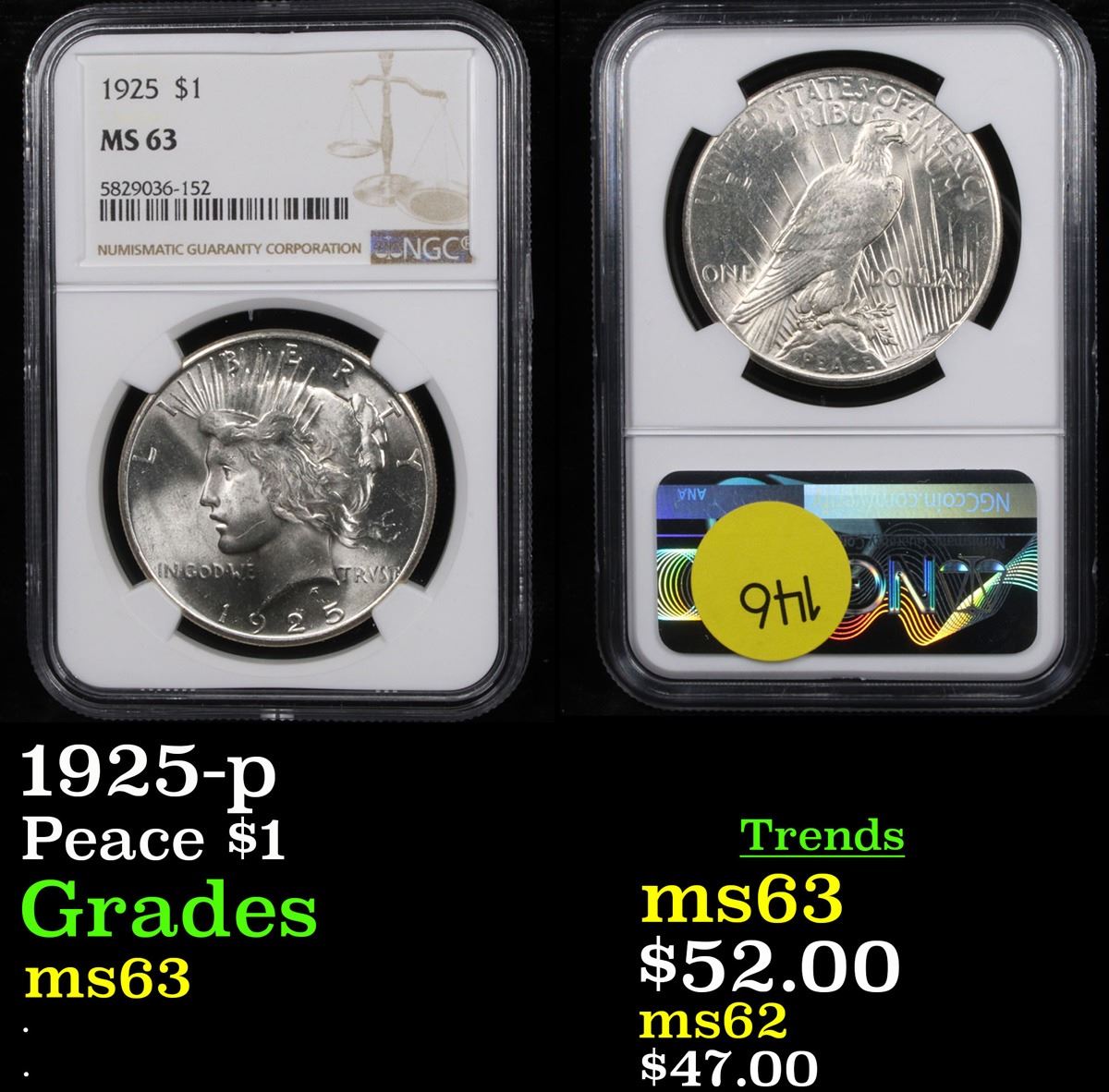 NGC 1925-p Peace Dollar $1 Graded ms63 By NGC.