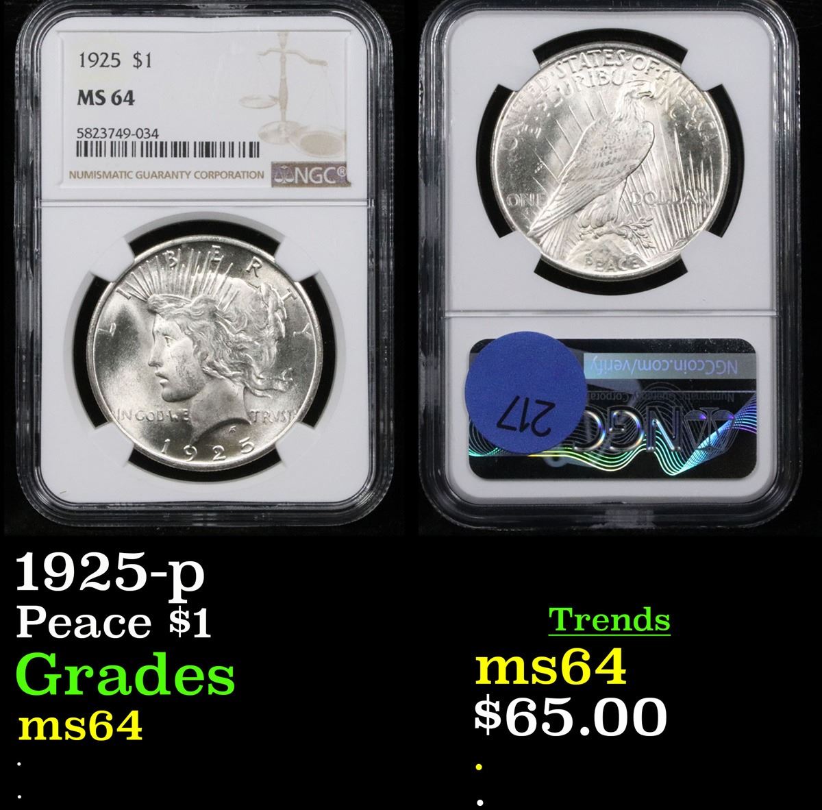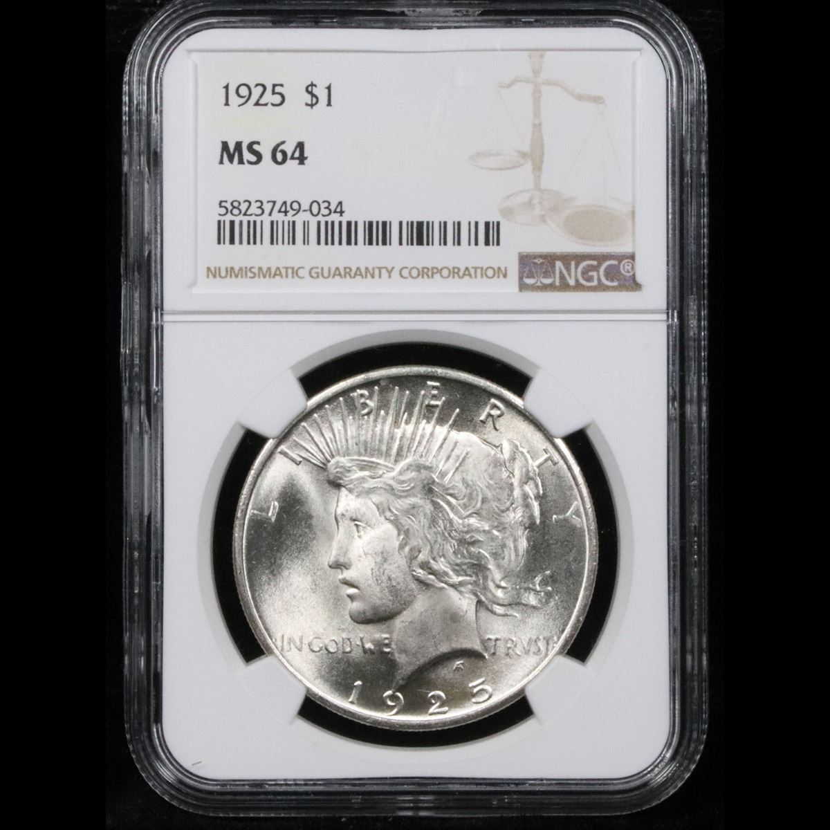 NGC 1925-p Peace Dollar $1 Graded ms64 By NGC.
