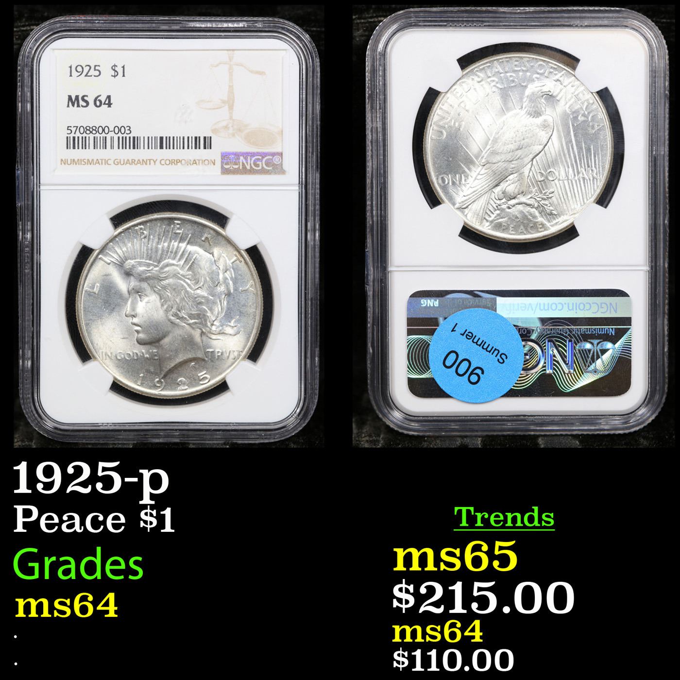 NGC 1925-p Peace Dollar $1 Graded ms64 By NGC.