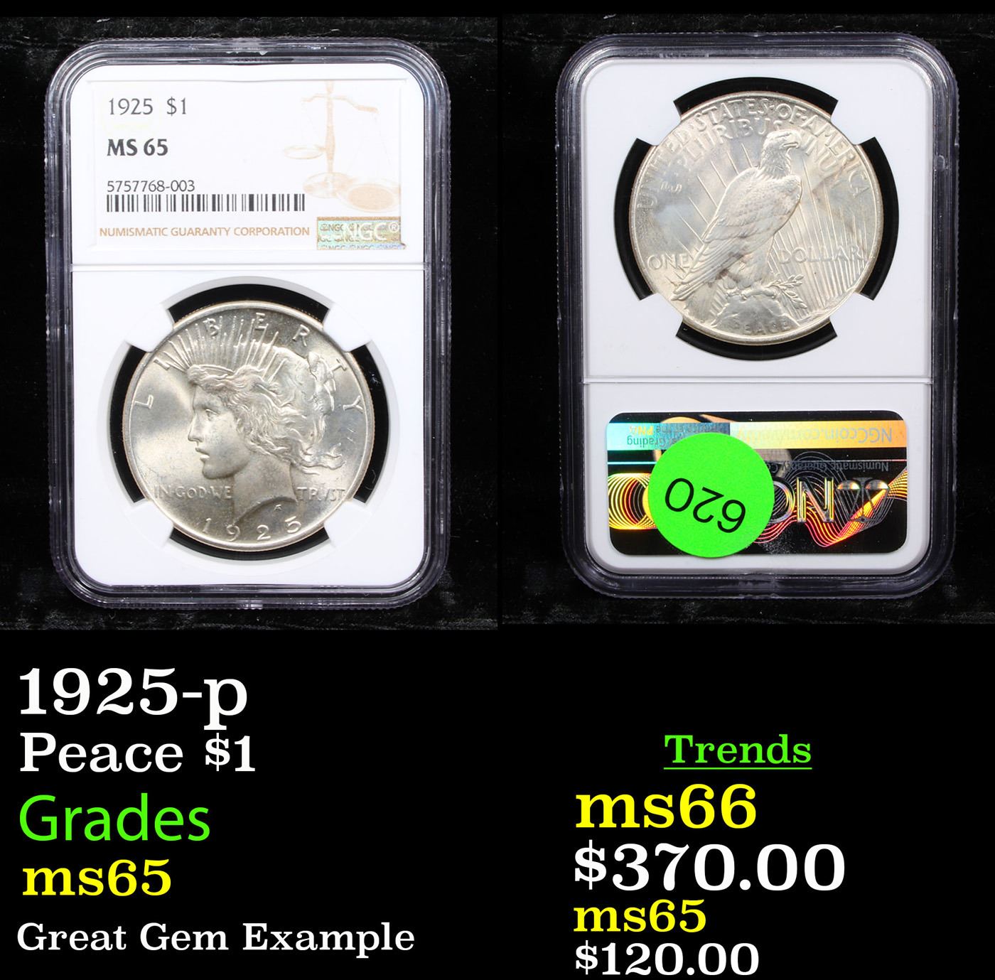 NGC 1925-p Peace Dollar $1 Graded ms65 By NGC.