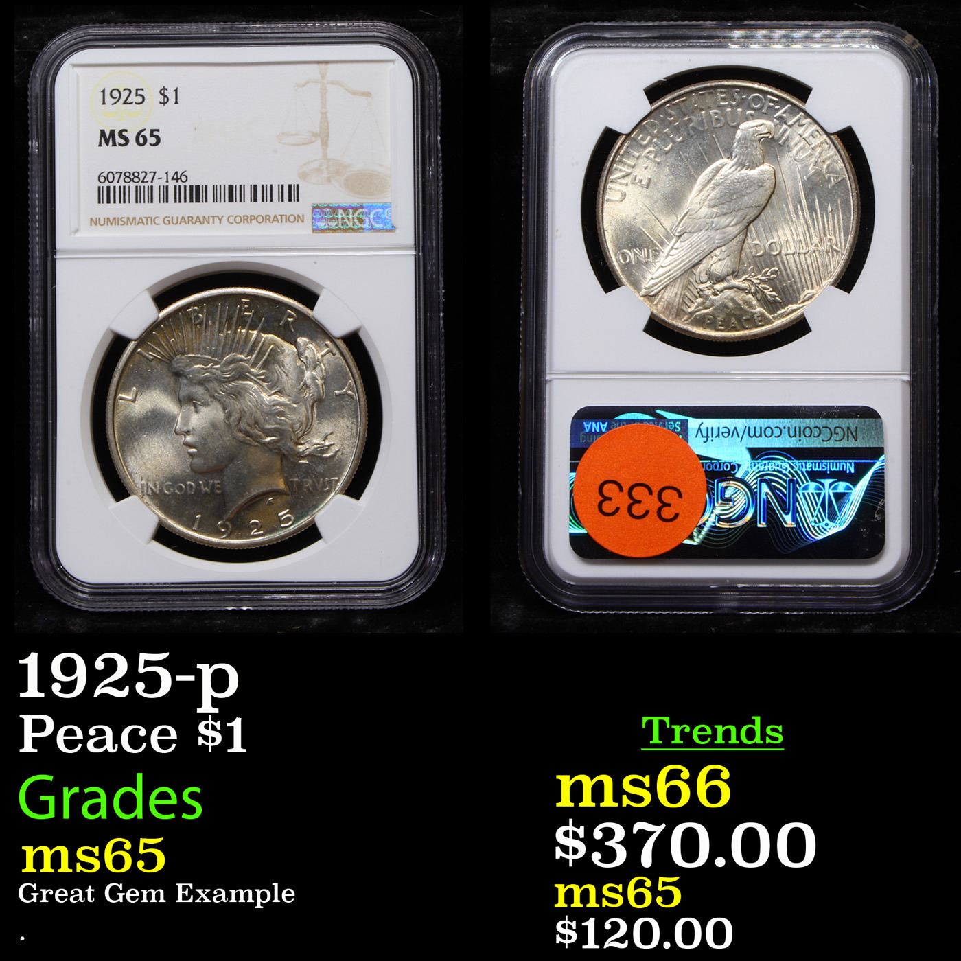 NGC 1925-p Peace Dollar $1 Graded ms65 By NGC.