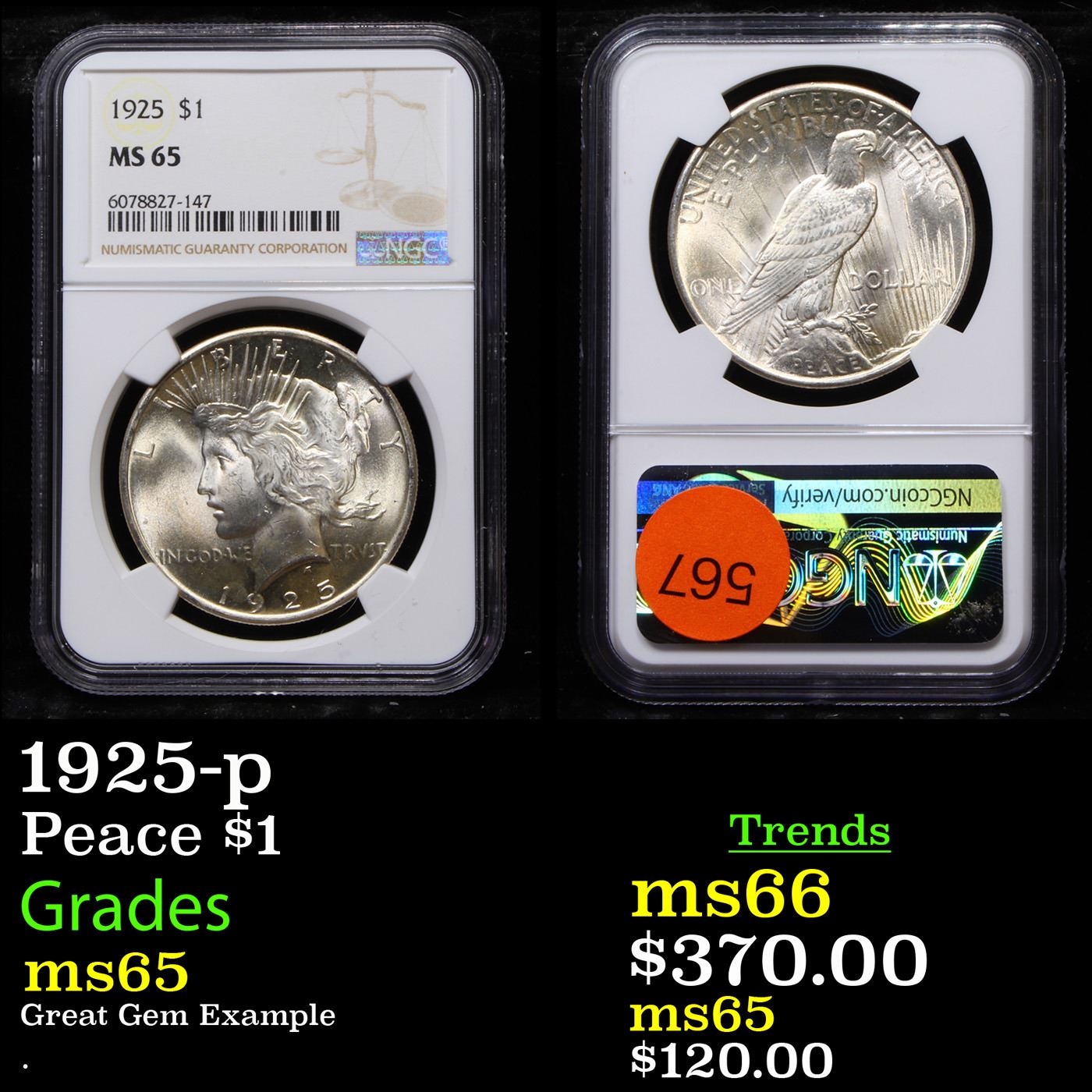 NGC 1925-p Peace Dollar $1 Graded ms65 by NGC.