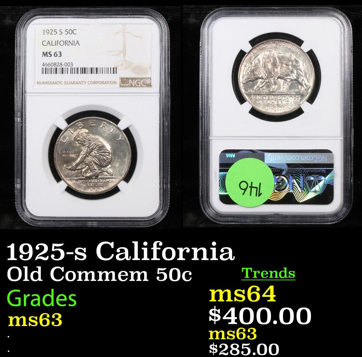 NGC 1925-s California Old Commem Half Dollar 50c Graded ms63 By NGC. The High Points of the Coin are the Bear's Shoulder and Leg and the Miner's Back, Shoulder and Shirtsleeve. The Coin was a Great Success when First Issued and is Still Sought After Today.