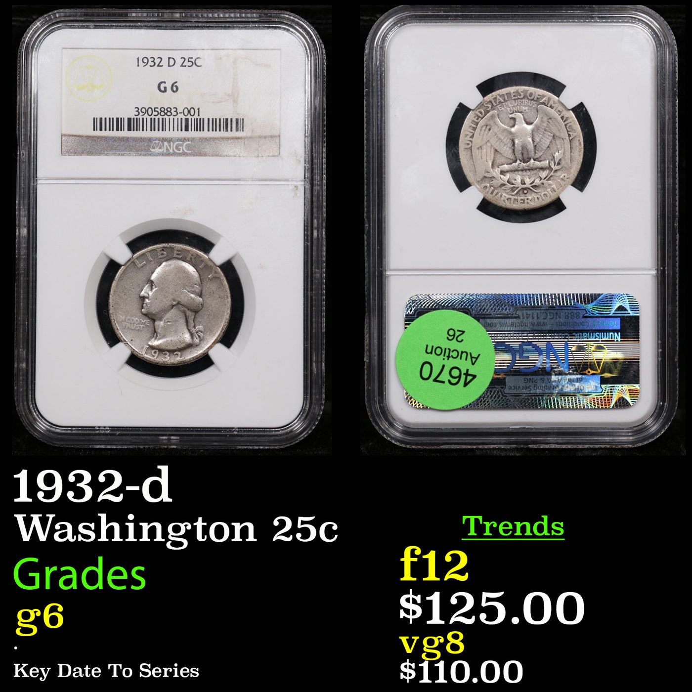 NGC 1932-d Washington Quarter 25c Graded g6 By NGC. According to David Hall, from PCGS The 1932-D is by far the rarest of the Washington quarters. There are only two Washington quarters with mintages of under one million coins. The 1932-D has an original mintage of 436,800. This coin has been highly sought after in all grades for the past 60 years. This is one of the key dates of the Washington quarter series and one of the better known rare coins of the twentieth century. Very scarce Key Date. This is the key date to the seies, even more scarce than the 1932-s. Scarce in all grades.