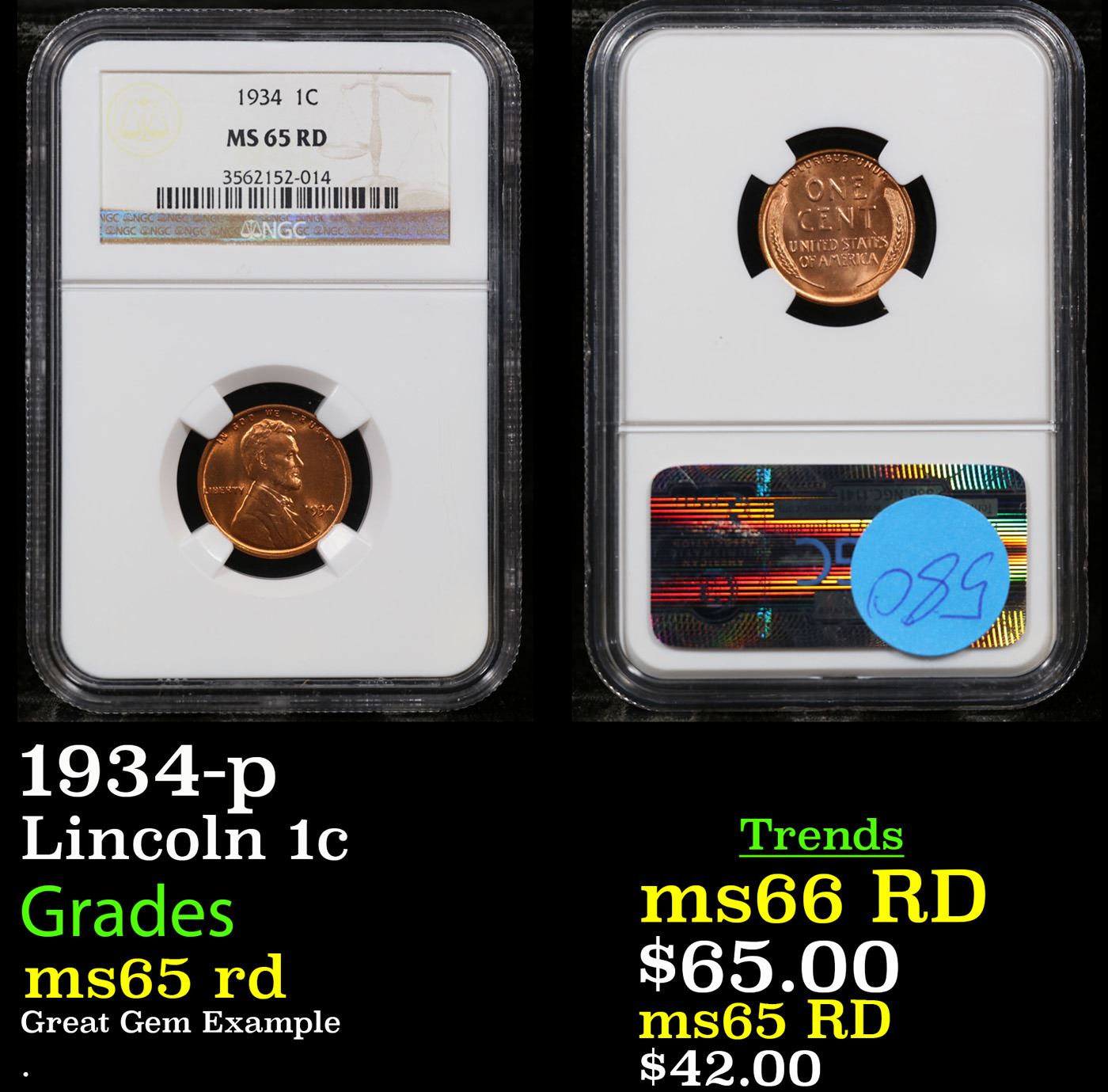 NGC 1934-p Lincoln Cent 1c Graded ms65 rd By NGC.