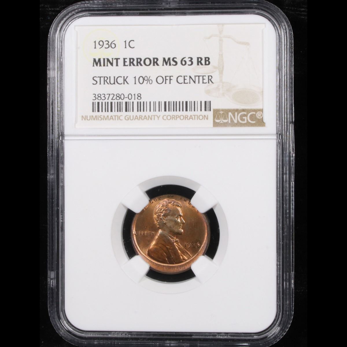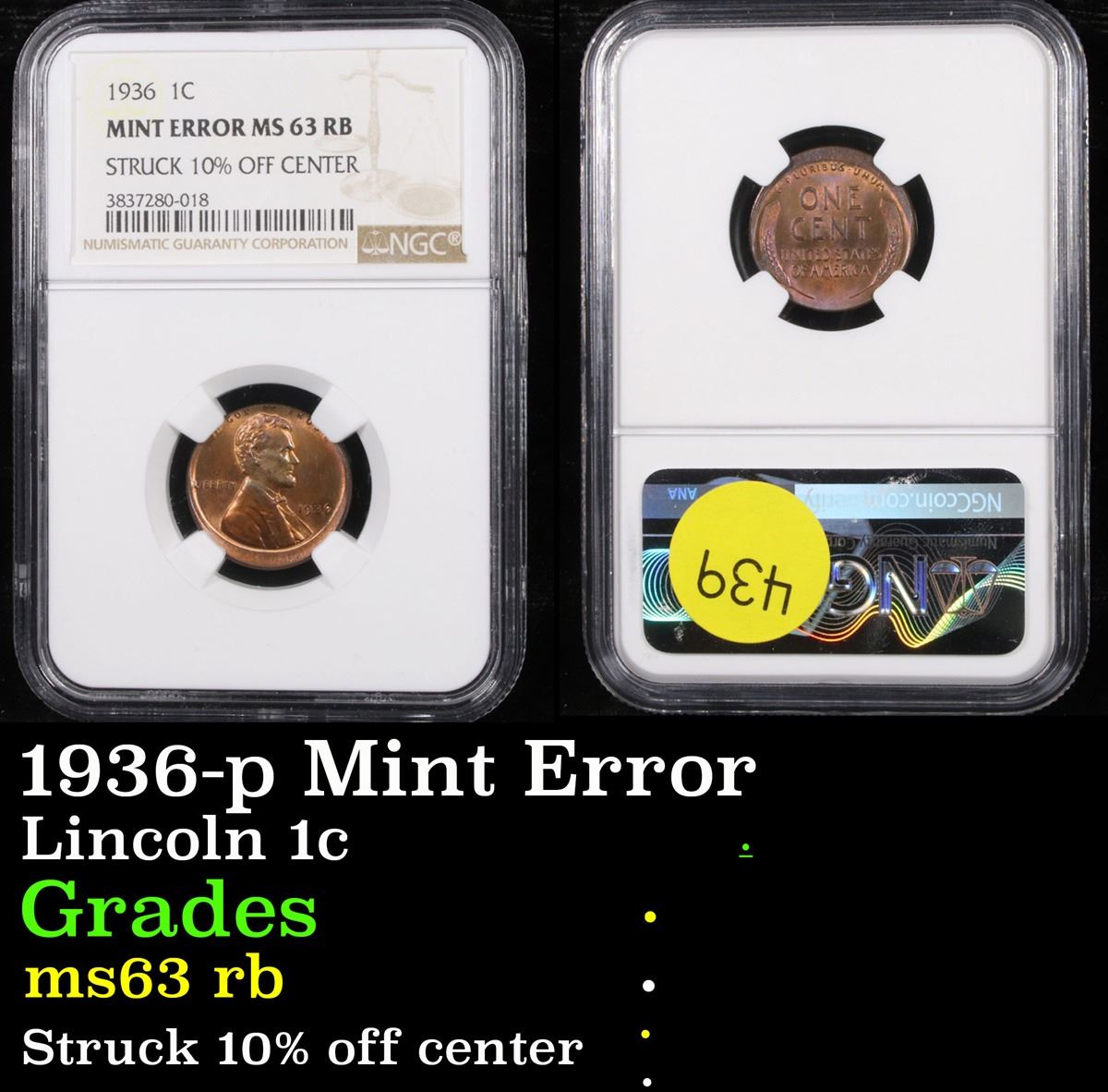 NGC 1936-p Mint Error Lincoln Cent 1c Graded ms63 rb By NGC.