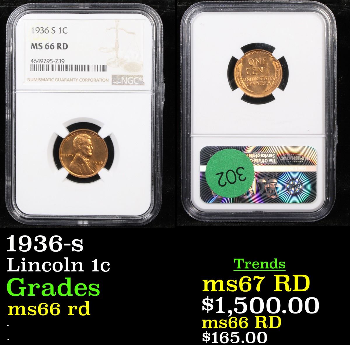 NGC 1936-s Lincoln Cent 1c Graded ms66 rd By NGC.