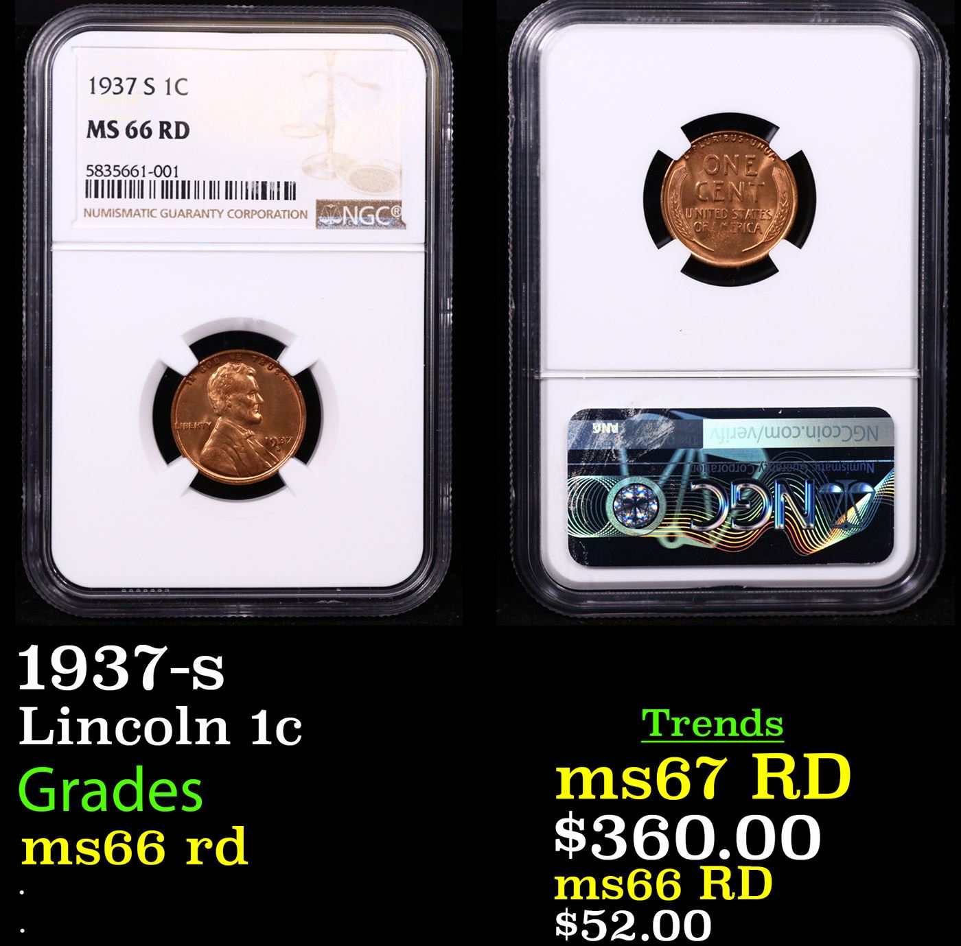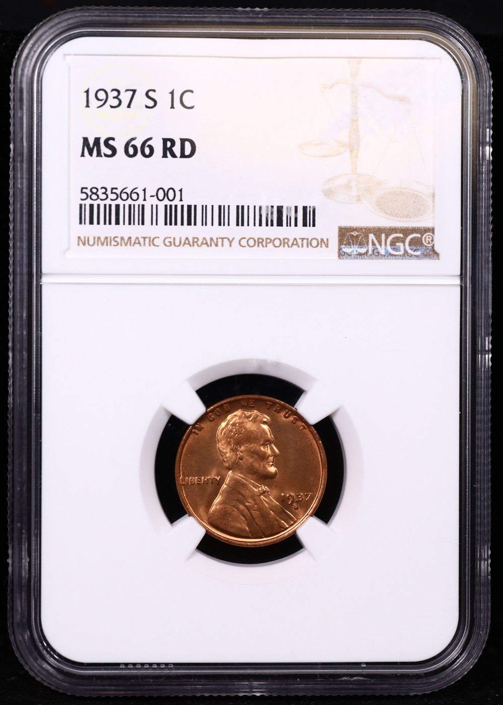 NGC 1937-s Lincoln Cent 1c Graded ms66 rd By NGC.