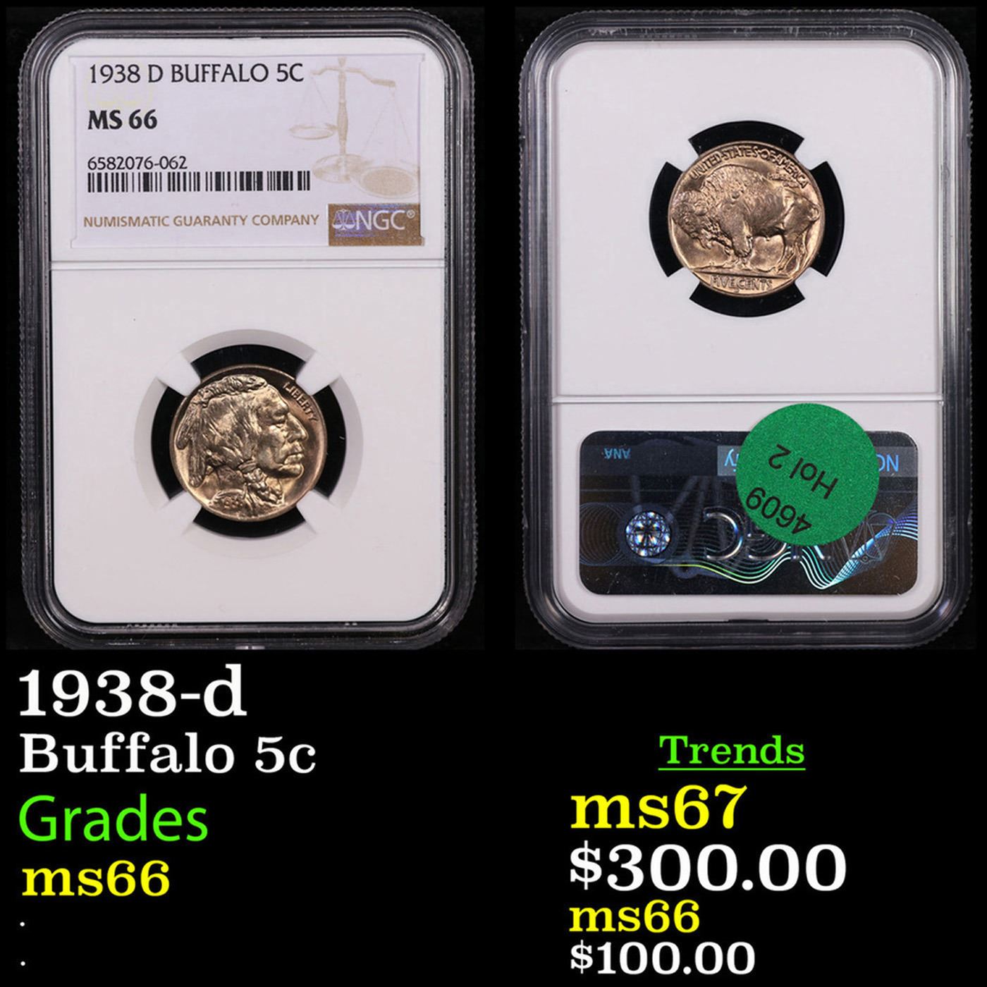 NGC 1938-d Buffalo Nickel 5c Graded ms66 By NGC.