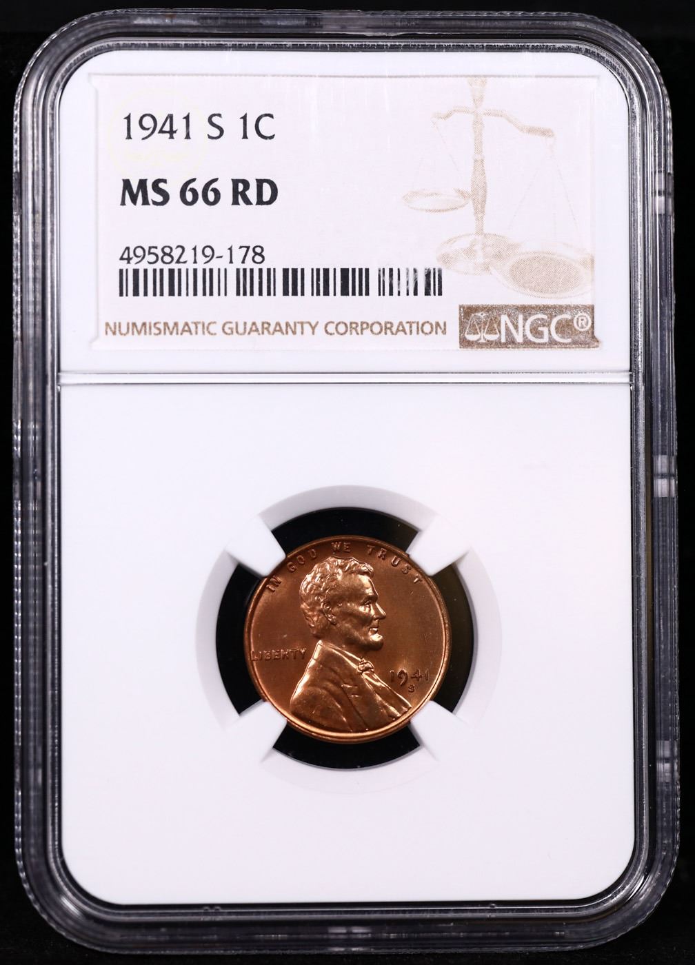 NGC 1941-s Lincoln Cent 1c Graded ms66 rd By NGC.