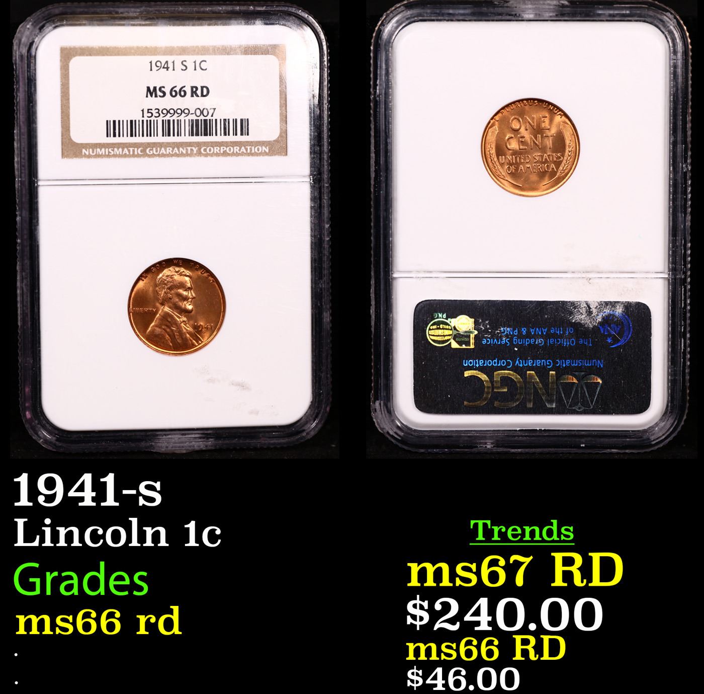 NGC 1941-s Lincoln Cent 1c Graded ms66 rd By NGC.